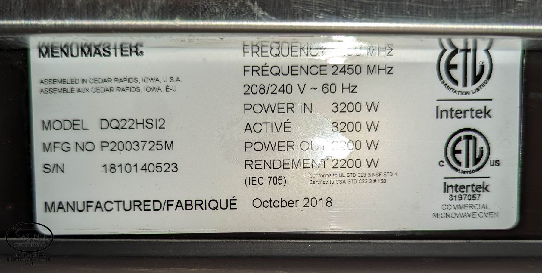 MODEL:DQ22HSI2. **ALL ITEMS MUST BE REMOVED BY 4:00PM, JULY 21ST, 2023. ALL ITEMS REMAINING AFTER 4:00PM, JULY 21, 2023 WILL BE CONSIDERED FORFEITED WITH NO REFUNDS TO THE BUYER WHATSOEVER. ALL ITEMS IN THIS AUCTION ARE SOLD IN UNTESTED CONDITION, DUE TO THE NATURE OF ONSITE AUCTIONS, WE ARE UNABLE TO TEST ITEMS PRIOR TO THE AUCTION. ABSOLUTELY NO REFUNDS WILL BE CONSIDERED FOR THIS AUCTION UNDER ANY CIRCUMSTANCE. WE RECOMEND TAKING ADVANTAGE OF VIEWING ON JULY 16TH, FROM 10:00AM UNTIL 4:00PM. PICK-UP IS AVAILABLE FROM JULY 18TH, UNTIL JULY 21ST, 10:00AM TO 4:00PM.