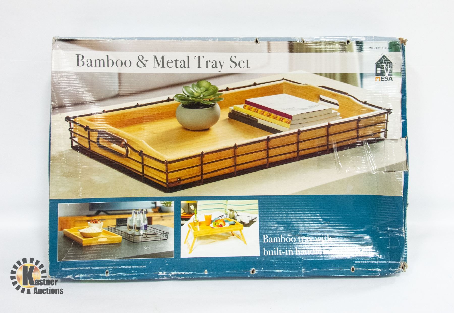 NEW MESA BAMBOO & METAL TRAY SET