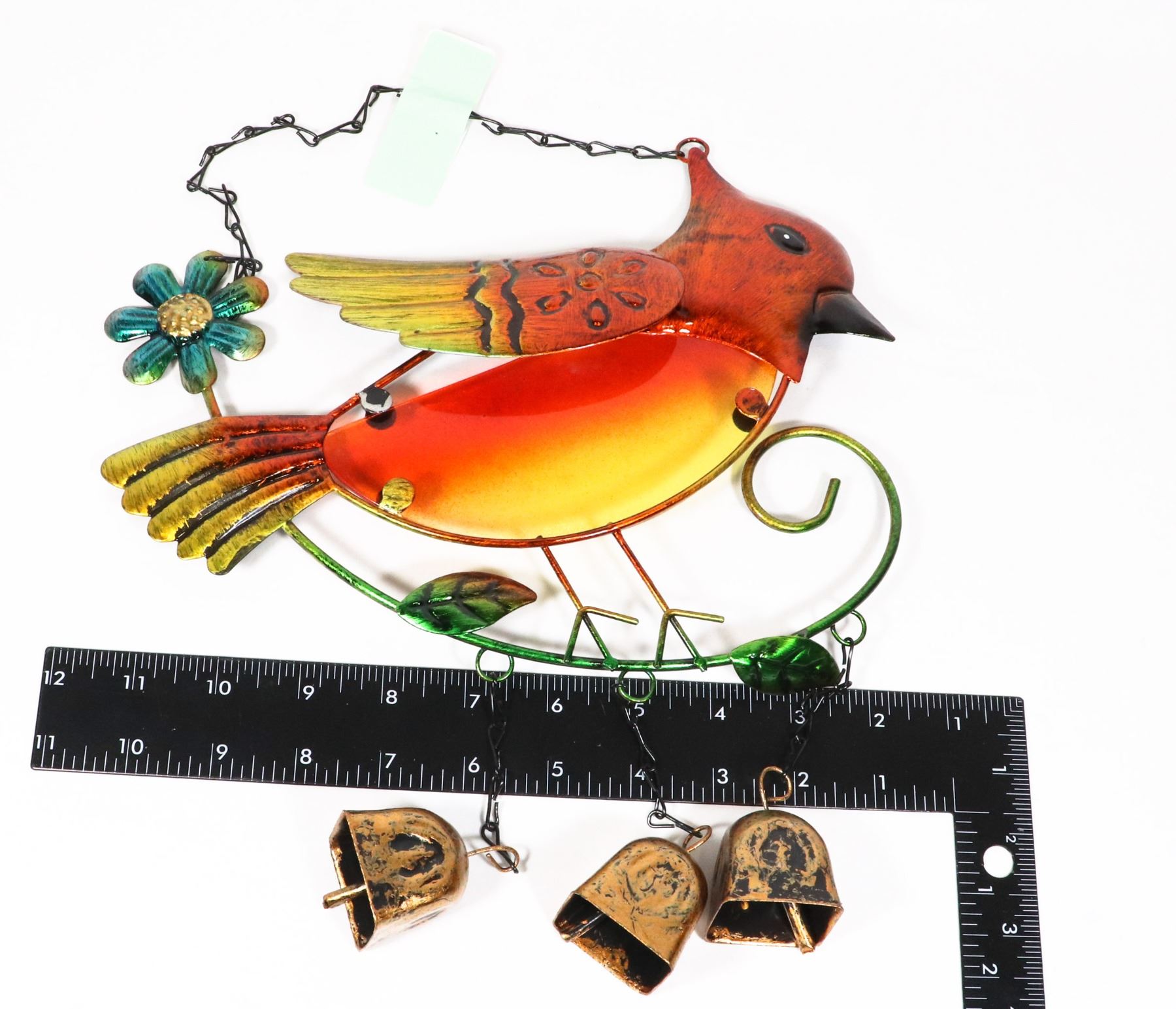 NEW METAL AND GLASS ORANGE BIRD WIND CHIME
