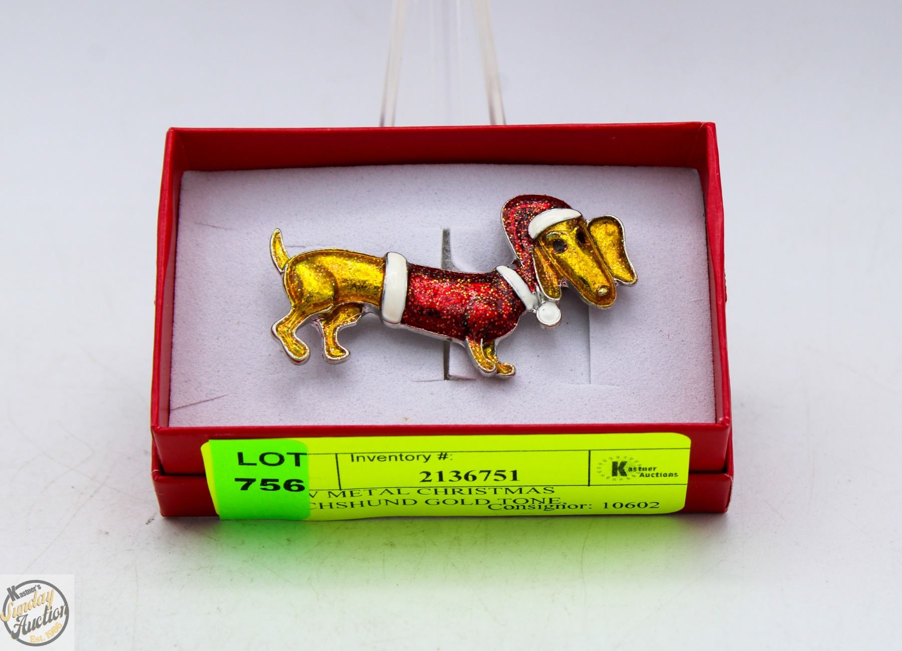 NEW METAL CHRISTMAS DACHSHUND GOLD TONE,