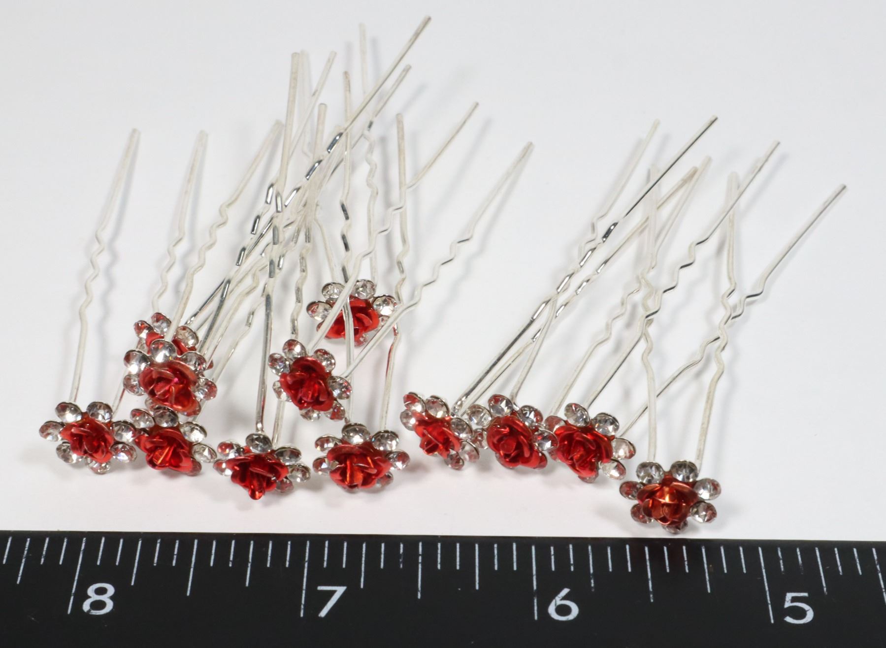 NEW METAL ROSE AND RHINESTONE HAIR PINS