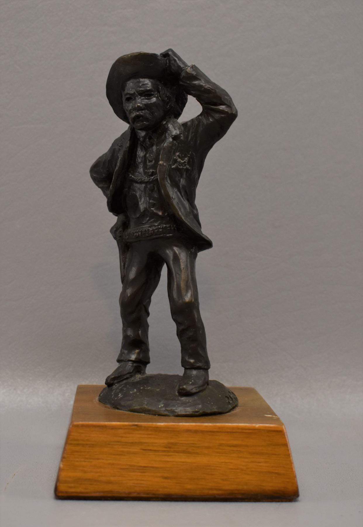 1978 New Mexican bronze by Tom Knapp depicting sheriff 6" tall including wood base