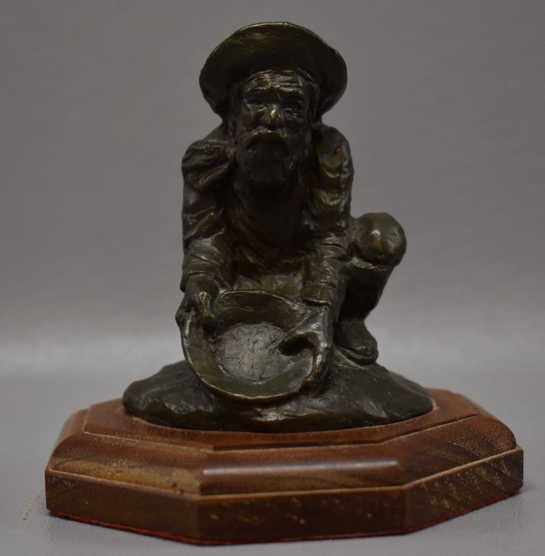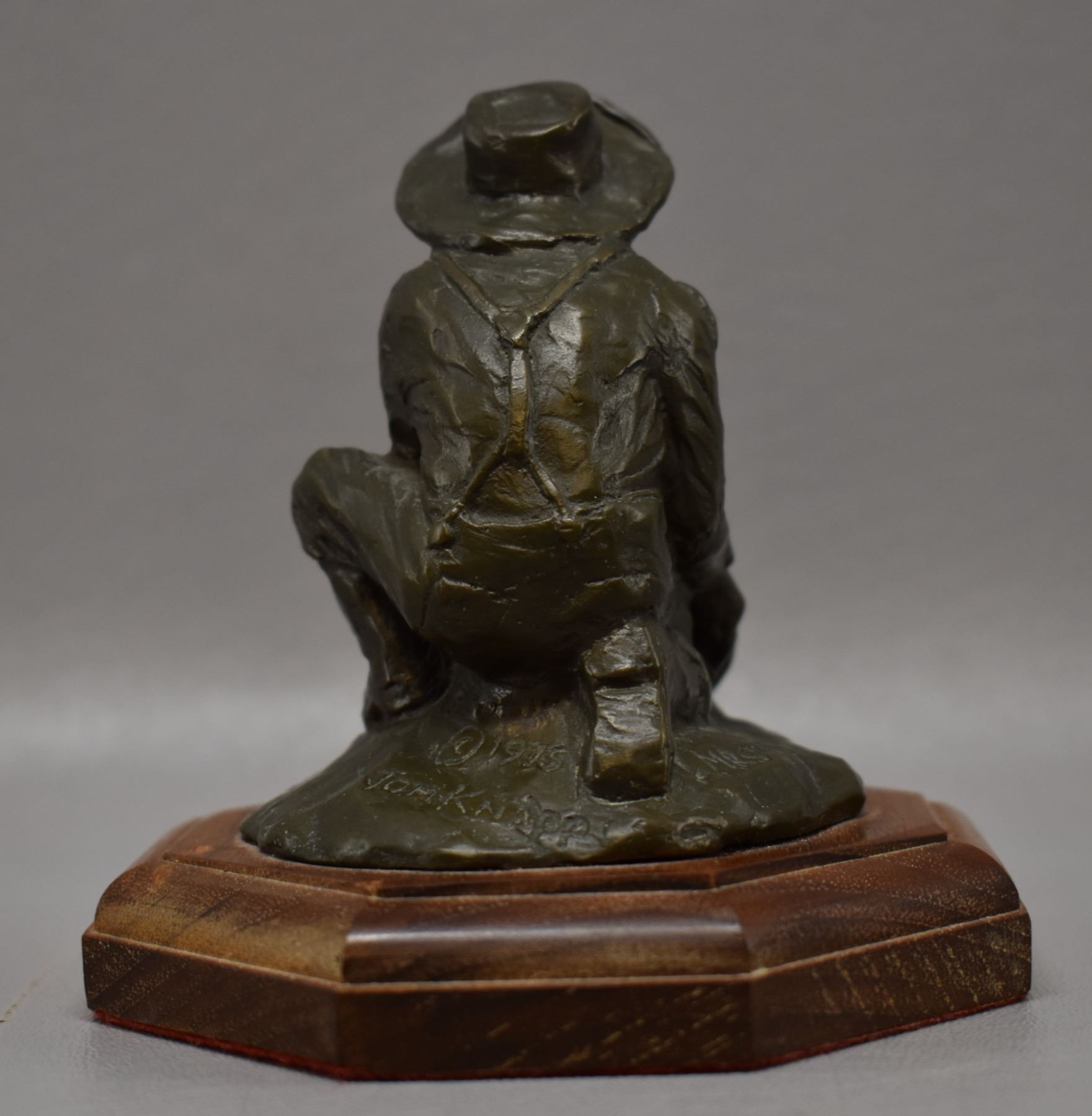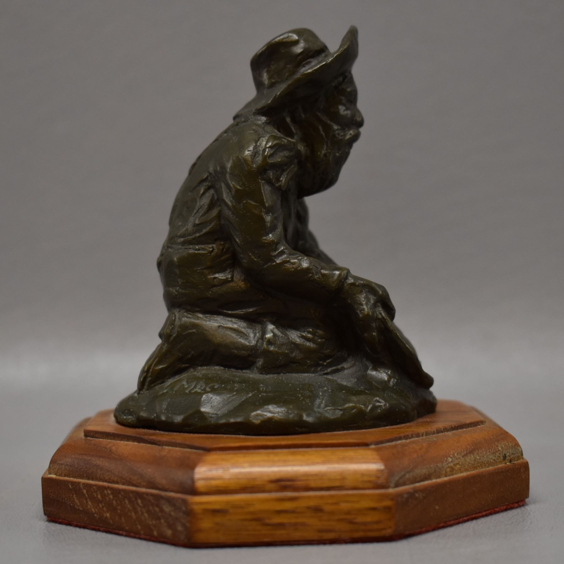 1975 new Mexican bronze by Tom Knapp depicting mining prospector 4" x 2.75" mounted on wood base 4" x .75"
