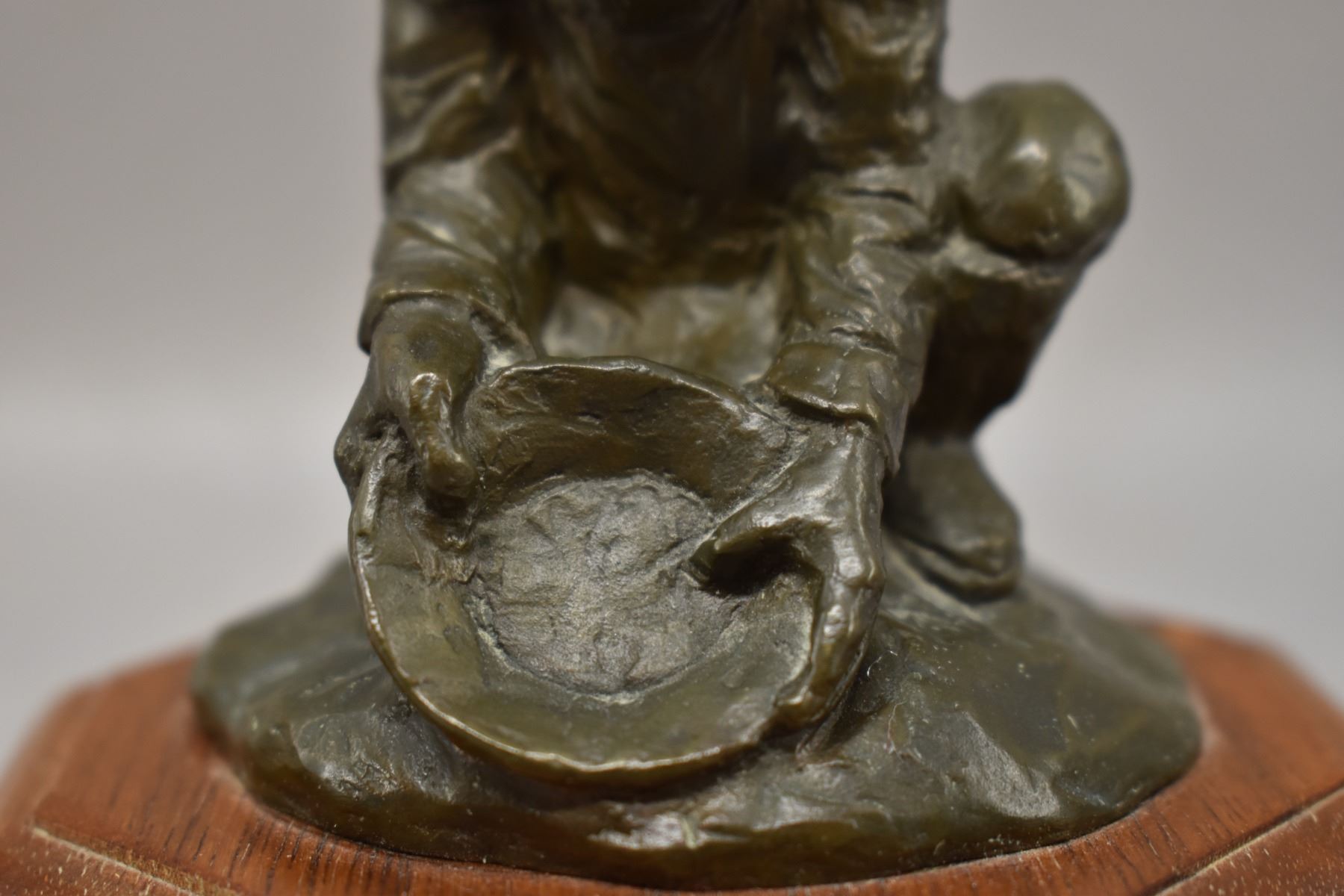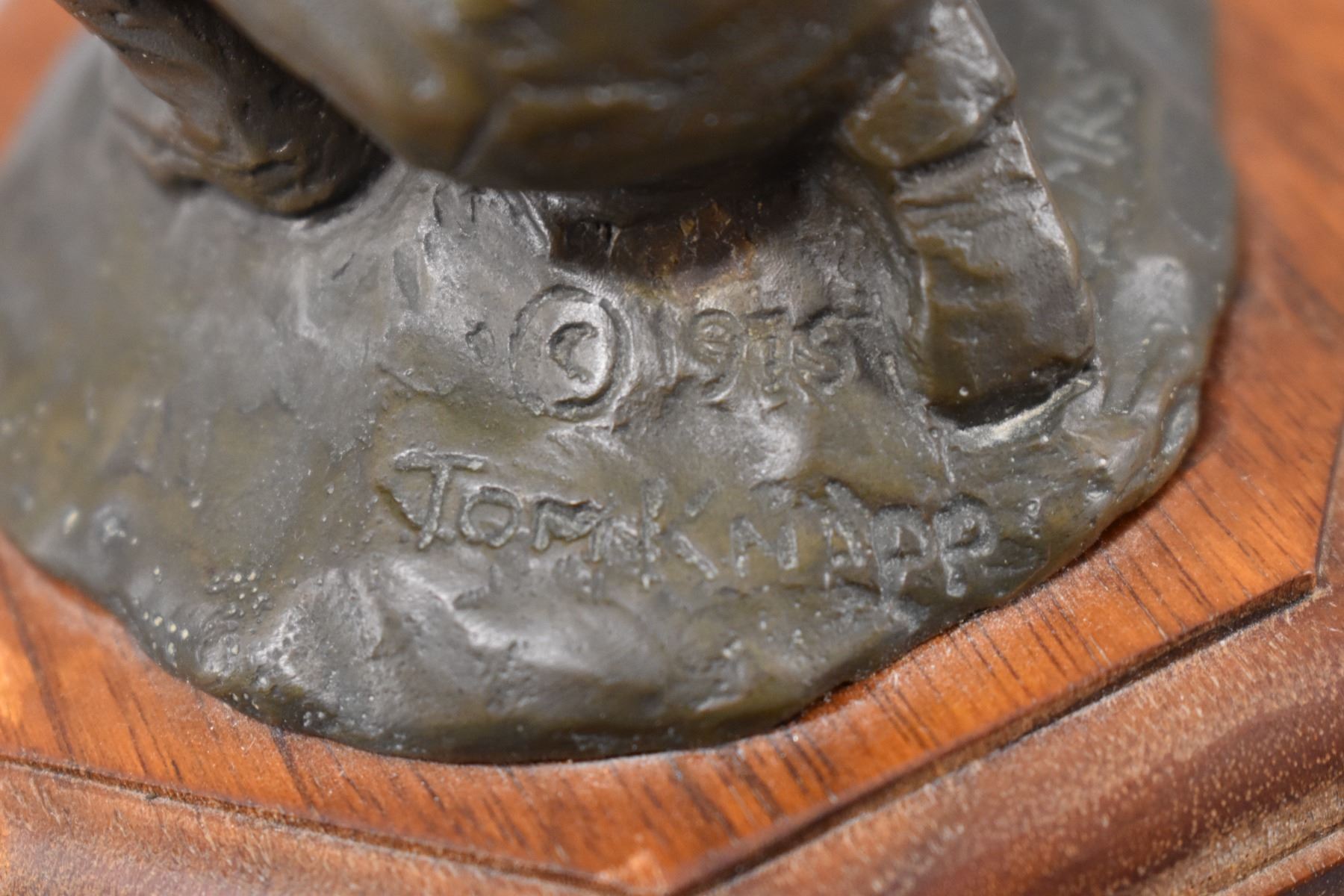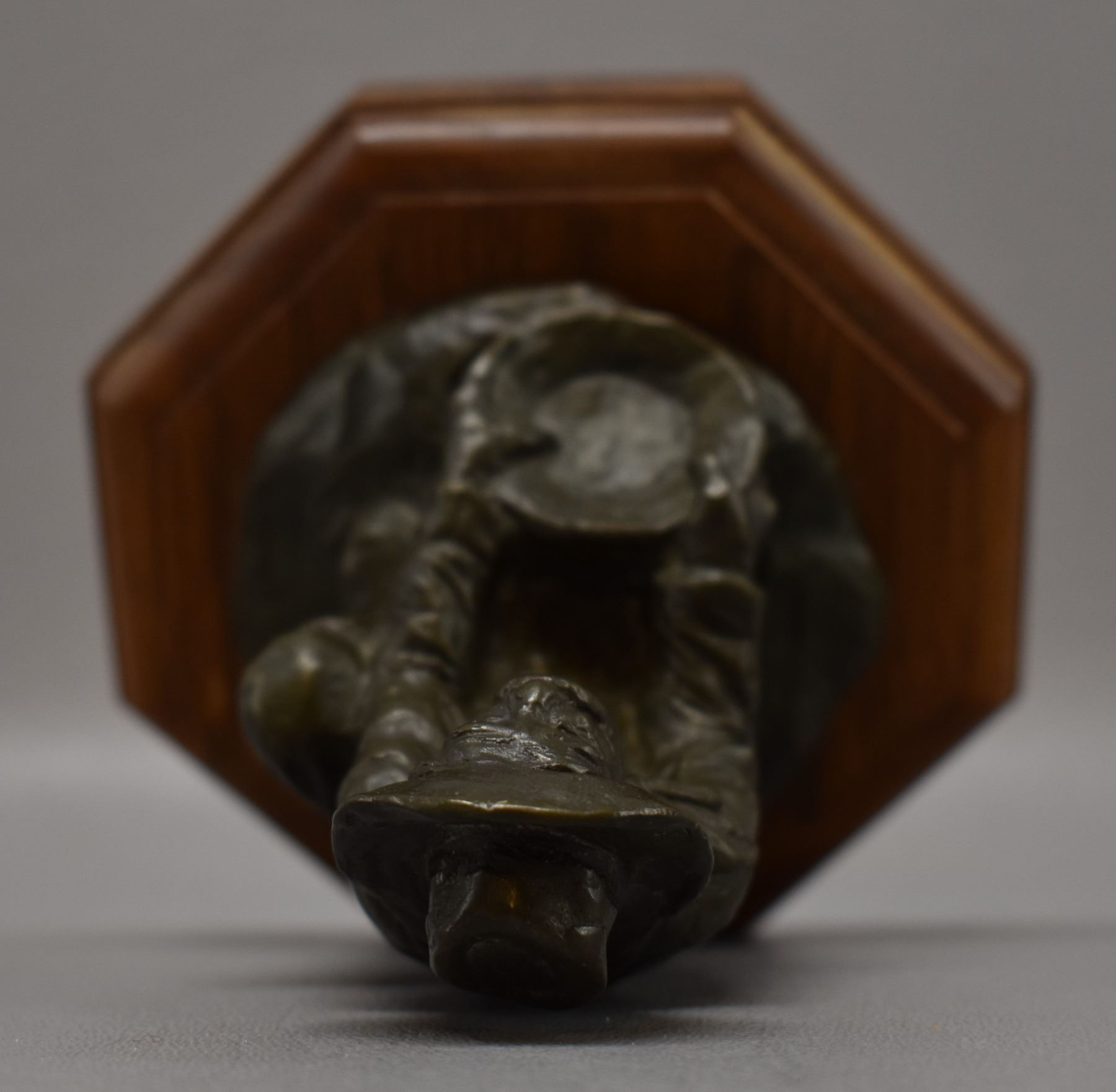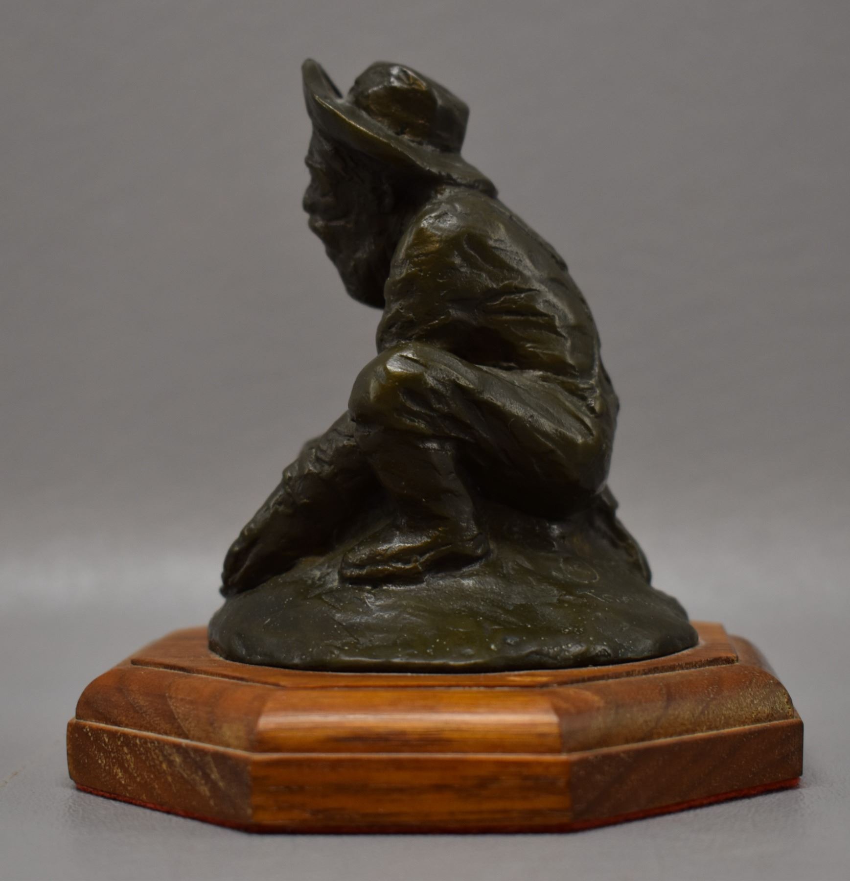 1975 new Mexican bronze by Tom Knapp depicting mining prospector 4" x 2.75" mounted on wood base 4" x .75"