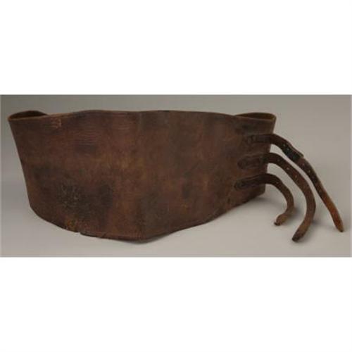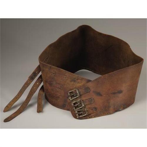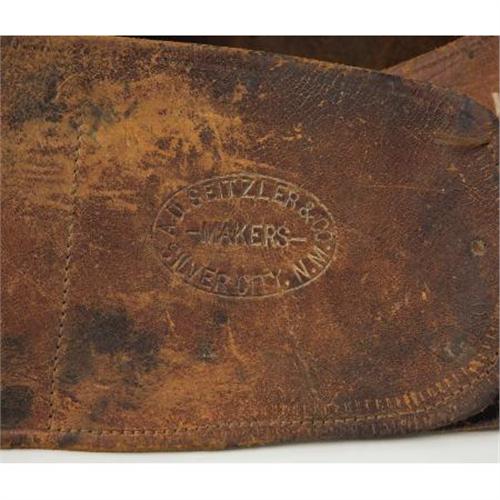 <B>NEW MEXICO MARKED BRONC BELT</B></I> - 3 Buckle buster's belt; 7”wide at center; clear makers mark of “A.D. SEITZLER & Company - makers - Silver City, New Mexico”; circa 1915-1928.<BR><BR><B>Condition</B></I>: Well worn; re-stitched; billets moved<BR><BR><b>Shipping:</b> Miscellaneous Collectibles, Larg (<a target="_blank" href="http://www.heritageauctions.com/common/shipping.php">view shipping information</a>)