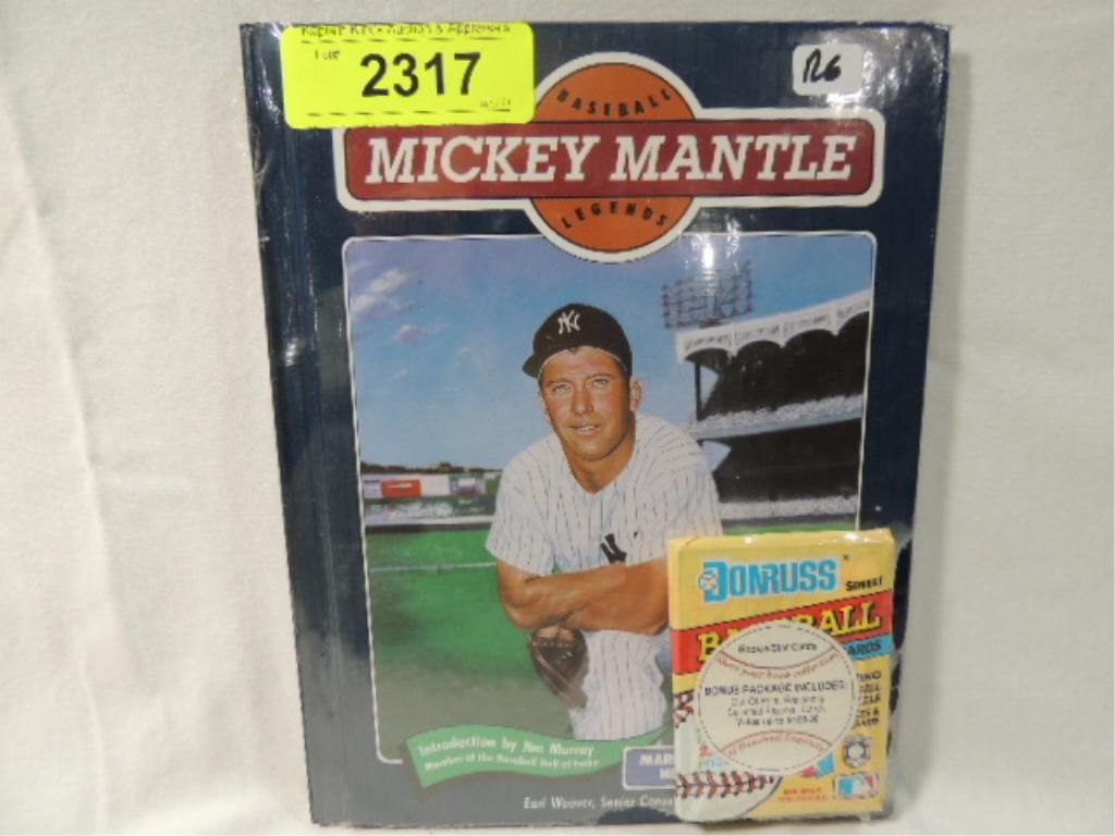 NEW MICKEY MANTLE BASEBALL LEGENDS BOOK AND DONRUSS BASEBALL CARD SET.