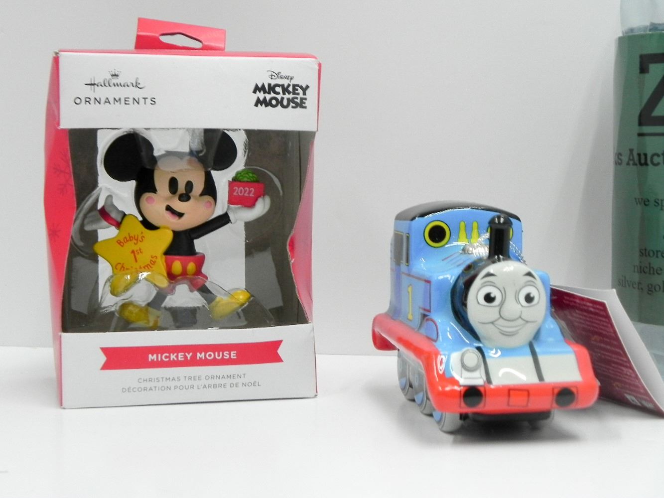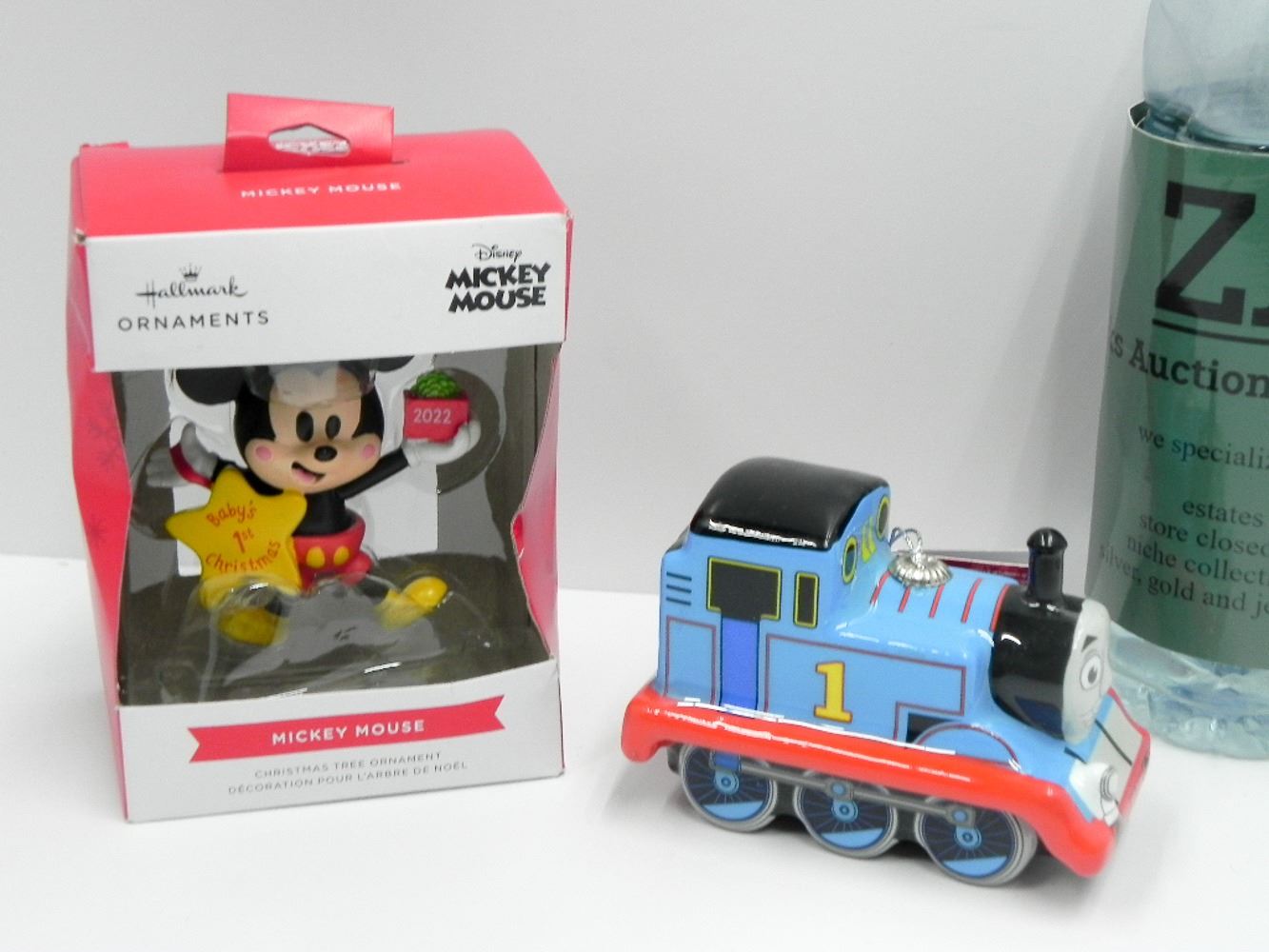 NEW MICKEY MOUSE AND THOMAS THE TANK ORNAMENTS. HALLMARK