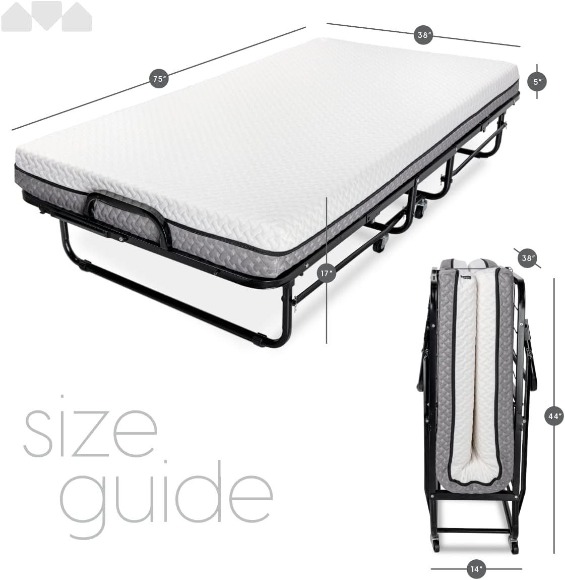75 X 38 X 17", FOLDABLE, HEAVY DUTY STURDY FRAME, HIGH QUALITY MEMORY FOAM MATTRESS, ROLLAWAY, AMZ SES, AMZ MSRP. $499.99 **ALL ITEMS MUST BE REMOVED BY 5PM SATURDAY, OCTOBER 7TH 2023. ALL REMAINING ITEMS WILL BE SUBJECT TO A $6.00 PER DAY STORAGE CHARGE. ANY ITEMS REMAINING AFTER MONDAY, OCTOBER 23RD, 2023 WILL BE CONSIDERED FORFEITED. NO REFUNDS WILL BE ISSUED FOR FORFEITED ITEMS. TO SCHEDULE A PICK UP APPOINTMENT CLICK HERE