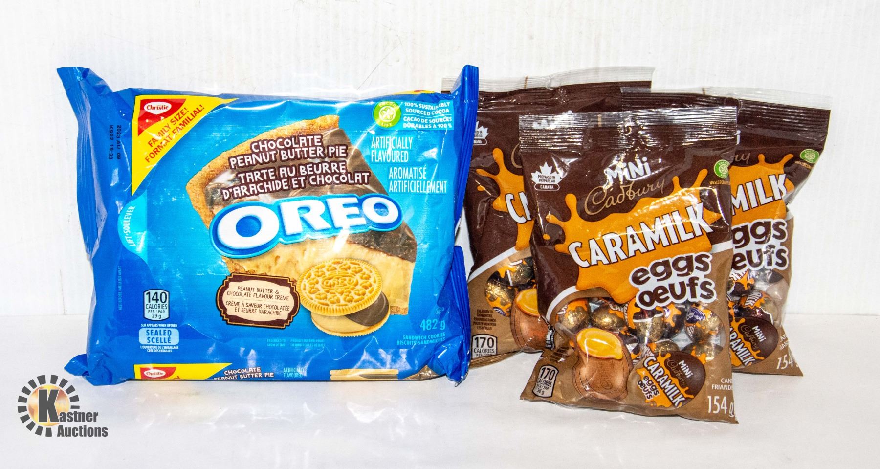 CADBURY CARAMILK MINI EGGS AND CHOCOLATE PEANUT BUTTER PIE OREO COOKIES, BB JUN/AUG 2023, AMZ SES