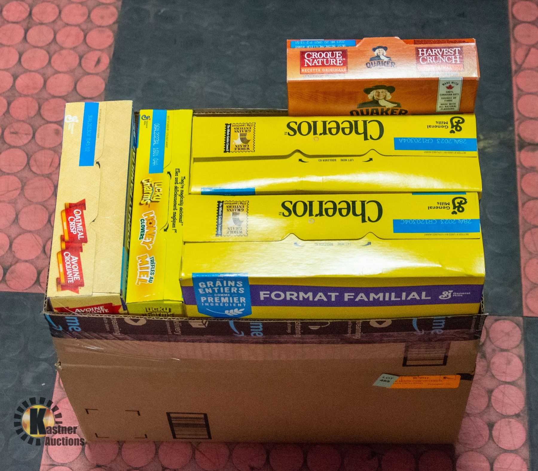 CHEERIOS X 2, HARVEST CRUNCH X 2, OATMEAL CRISP, LUCKY CHARMS HONEY CLOVERS, BB DATES ARE APR 30, APR 6, APR 28, MAR 20 - 2023, AMZ SES **ALL ITEMS MUST BE REMOVED BY 5PM SATURDAY, APRIL 22ND, 2023. ALL REMAINING ITEMS WILL BE SUBJECT TO A $6.00 PER DAY STORAGE CHARGE. ANY ITEMS REMAINING AFTER MONDAY, MAY 8TH, 2023 WILL BE CONSIDERED FORFEITED. NO REFUNDS WILL BE ISSUED FOR FORFEITED ITEMS.** TO SCHEDULE A PICK UP APPOINTMENT CLICK HERE