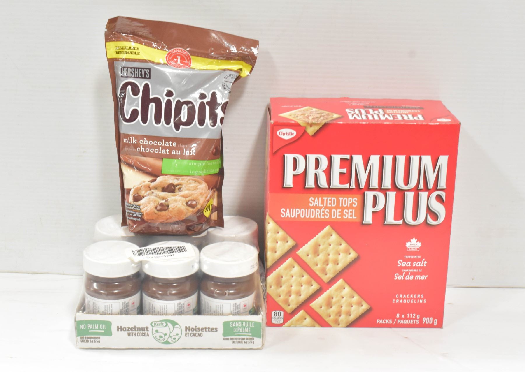CASE OF HAZELNUT SPREAD BY KRAFT 6 X 375G BB. FEB. 04, 2023, BAG OF HERSHEYS CHIPITS MILK CHOCOLATE CHIPS 900G BB. OCT. 2022, PREMIUM SALTED TOP CRACKERS SEA SALT 8 X 112G, AMZ SES **ALL ITEMS MUST BE REMOVED BY 5PM SATURDAY, MARCH 18TH 2023. ALL REMAINING ITEMS WILL BE SUBJECT TO A $6.00 PER DAY STORAGE CHARGE. ANY ITEMS REMAINING AFTER MONDAY, APRIL 3RD, 2023 WILL BE CONSIDERED FORFEITED. NO REFUNDS WILL BE ISSUED FOR FORFEITED ITEMS. TO SCHEDULE A PICK UP APPOINTMENT CLICK HERE