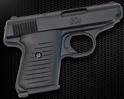 Model: JA-25 Height: 3.2 inches Thickness: .875 inches Weight: 13 Ounces Length: 5 inches Barrel Length: 2.5 inches