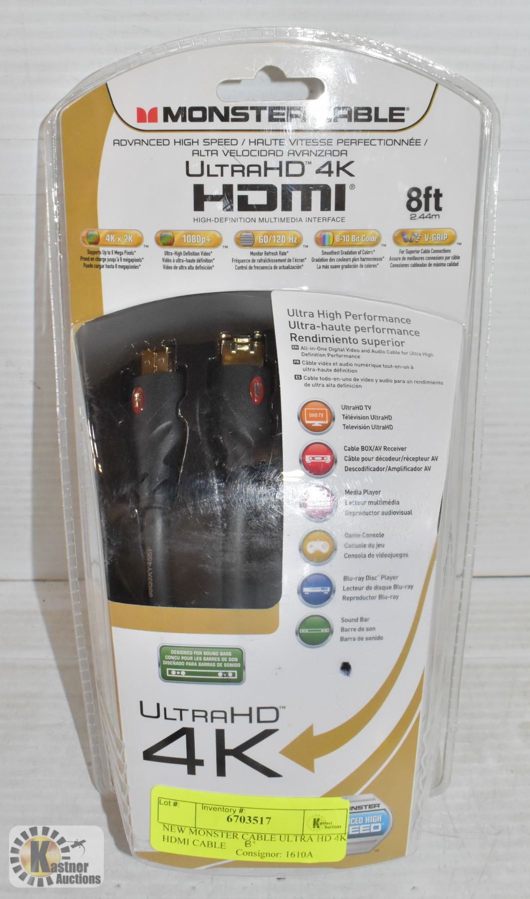 NEW MONSTER CABLE ULTRA HD 4K HDMI CABLE 8'
