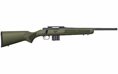 Mfr Items:Mossberg Category:RIFLES Model:MVP Series:Thunder Ranch Action:Bolt Caliber:223 Remington/5.56 NATO Barrel Length:18.5" Capacity:10+1 Trigger:Adjustable LBA Safety:Lever OAL:40" Weight:7 lbs Stock Description:Synthetic OD Green Metal Finish:Blued Twist:1:9" Barrel Description:Heavy Fluted Muzzle:Threaded Receiver Material:Steel Sights:None, Integrated Base