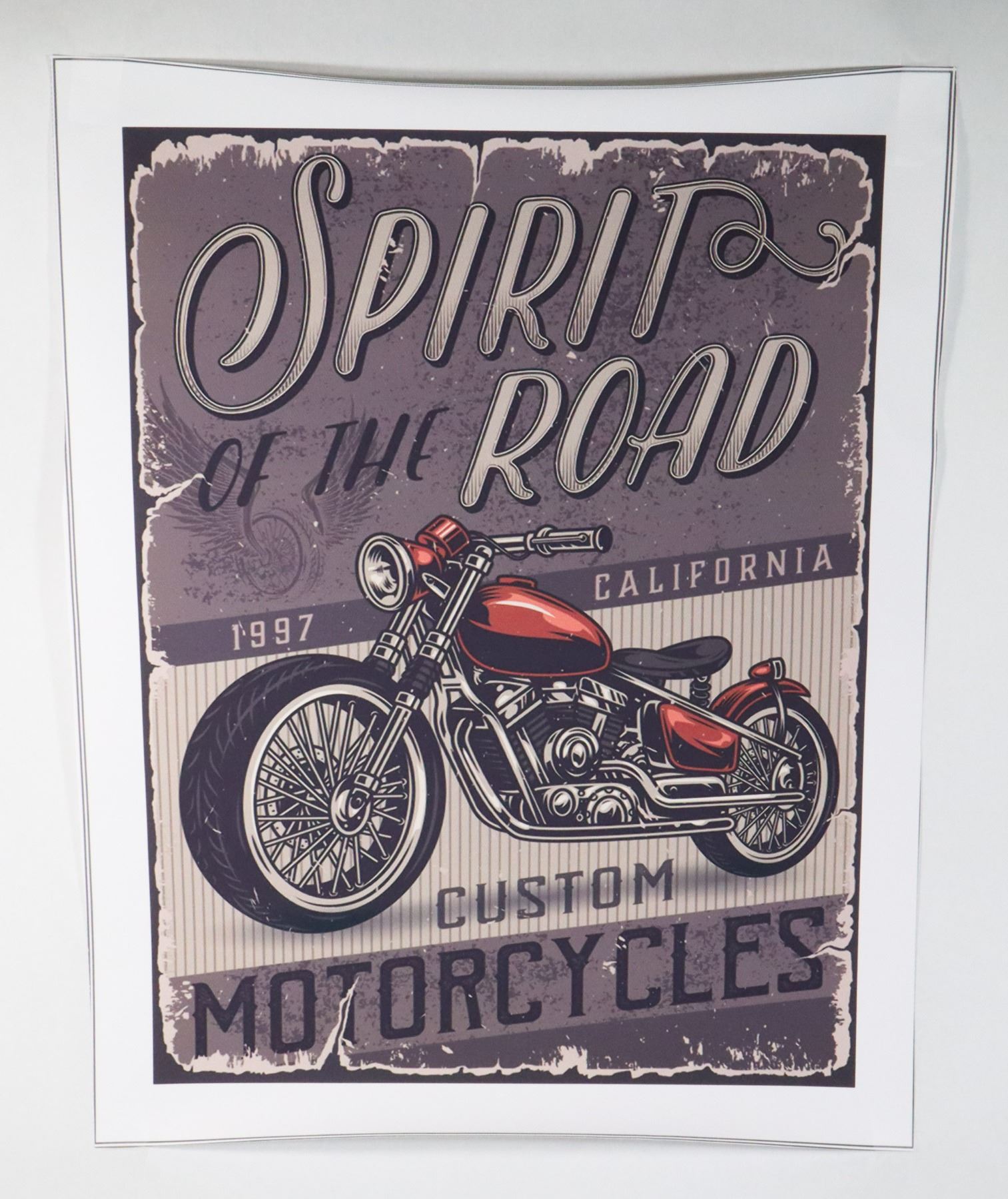 APPROX. 30CMX40CM SAY" SPIRIT OF THE ROAD. 1997 CALIFORNIA. CUSTOM MOTORCYCLES"