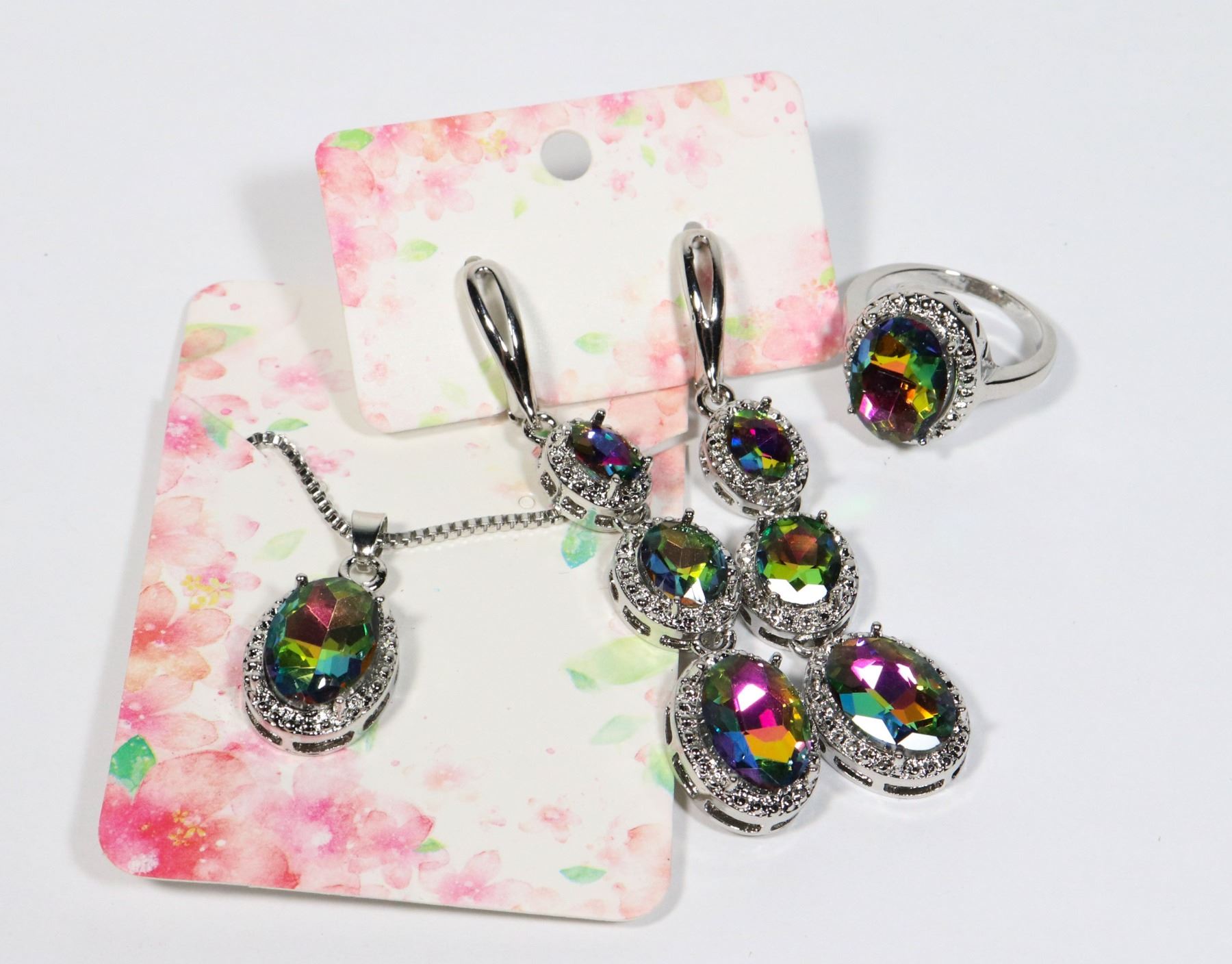 NEW MYSTIC RAINBOW RHINESTONE EARRINGS, PENDANT