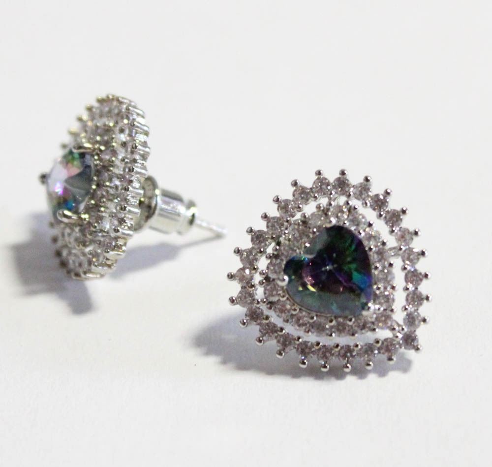 NEW MYSTIC TOPAZ CUBIC ZIRCONIA HEART EARRINGS