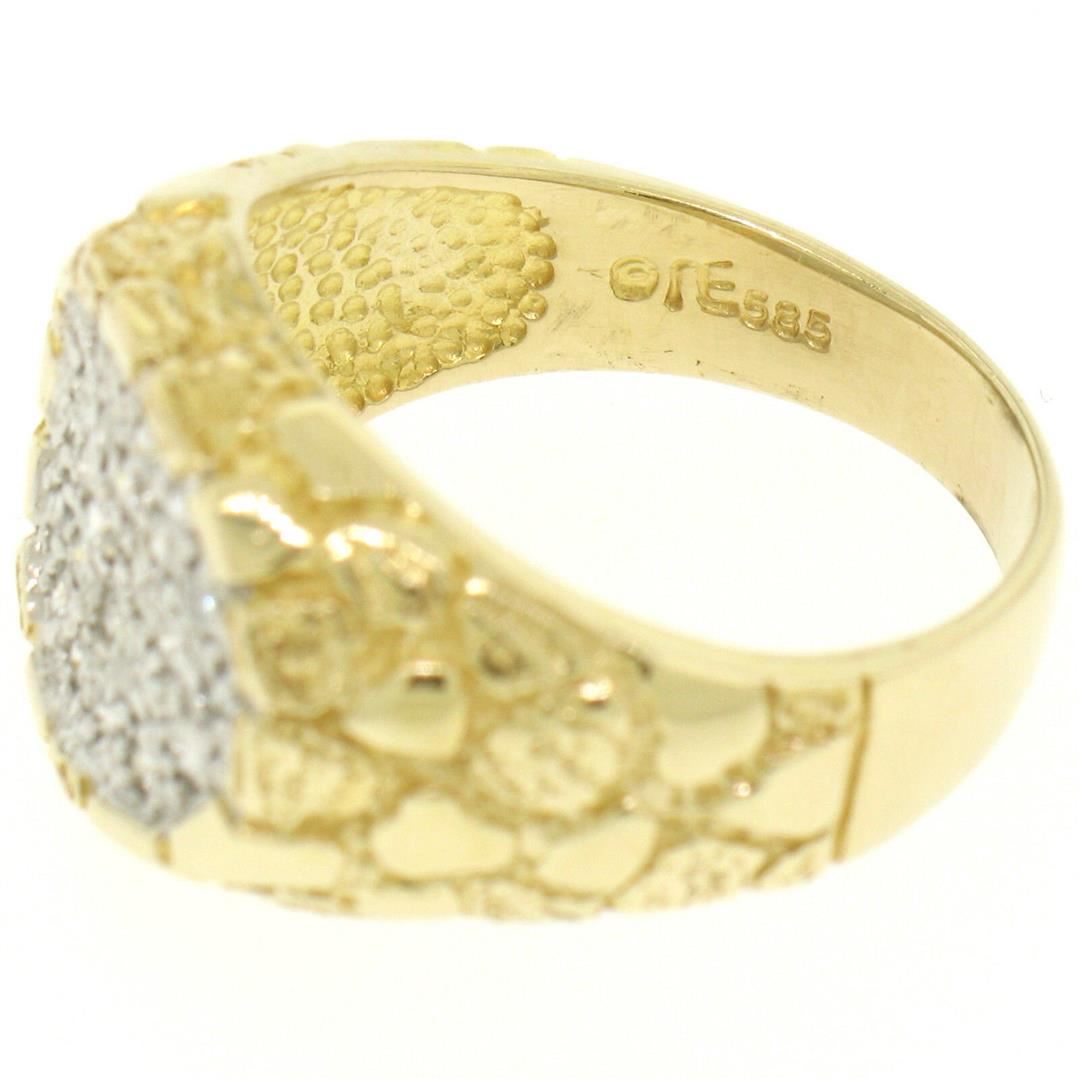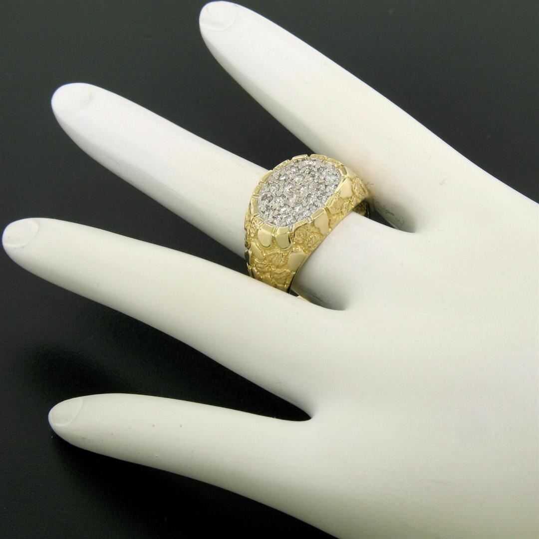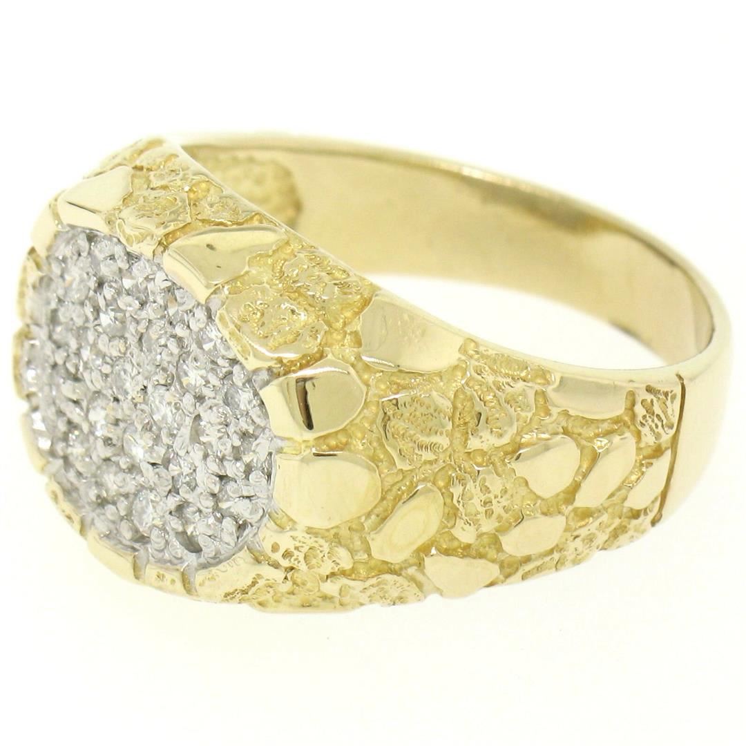One NEW Men's 14K Two Tone Gold Nugget Texture 0.60ctw Oval Round Diamond Cluster Ring. Item Details: Material: Solid 14K Yellow and White Gold, Weight: 8.72 Grams, Stone(s): (24) Natural Genuine Diamonds - Round Brilliant Cut - Pavé Set - G/H Color - VS2/SI1 Clarity, Total Carat Weight: 0.60 (approx.), Ring Size: 9.5 , Ring Width: 14.20mm, Ring Height: 3.97mm rise off the finger, Condition: New w/o Tag!