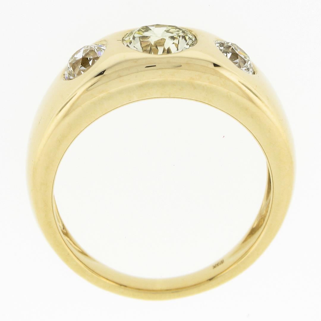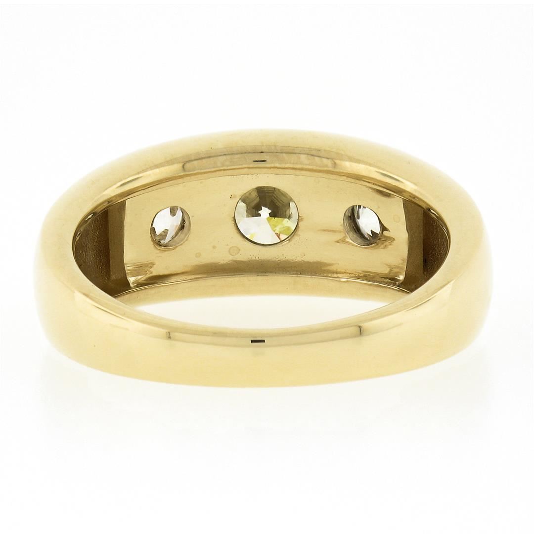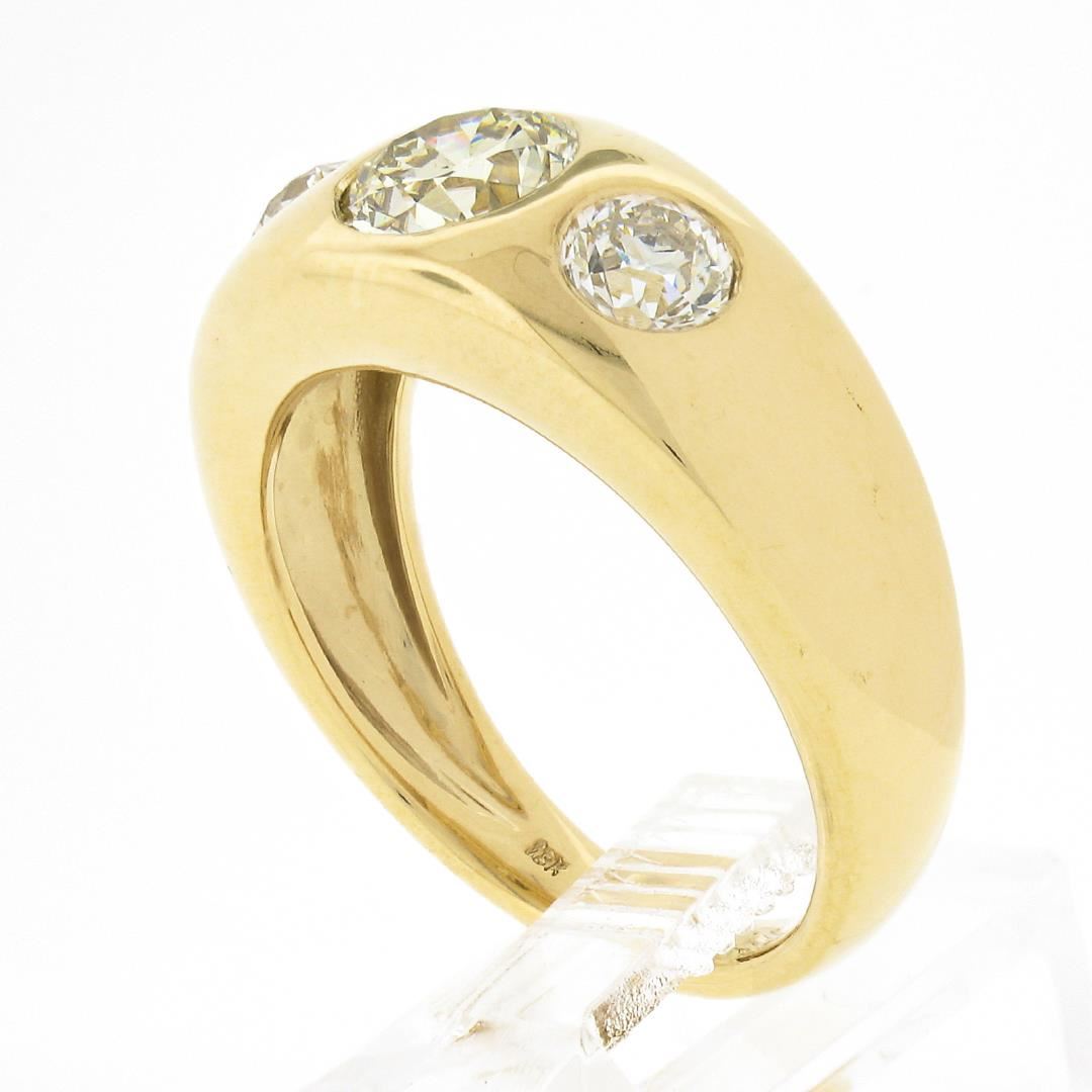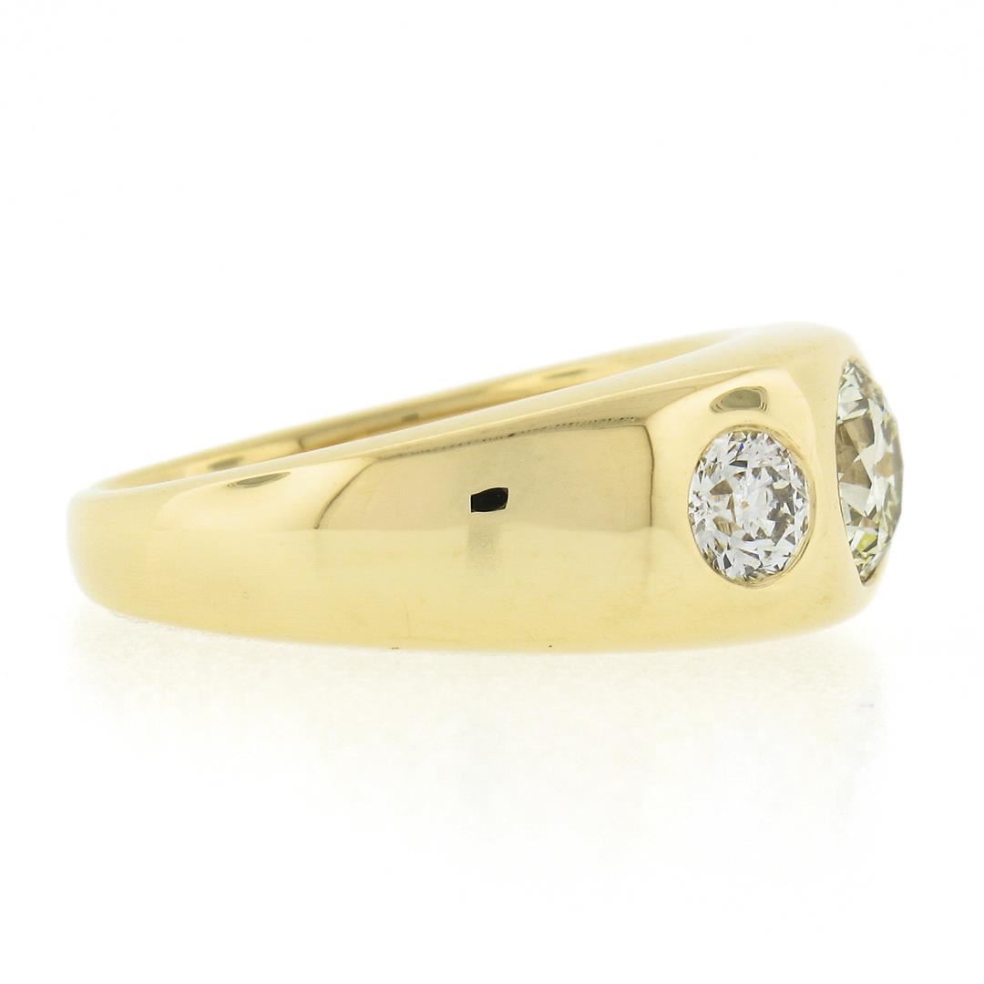 A new soliod 18k yellow gold band ring, with 1 GIA graded old european cut natural diamond (S/T - VS2 ; 1.14ct), and 2 old european cut natural diamonds (H/I - VS2/SI1 ; 0.82ctw). The ring is size 9.0, weighs a total of 10.56 grams, and measures 9.1mm wide. Comes with all original relevant certifications.
