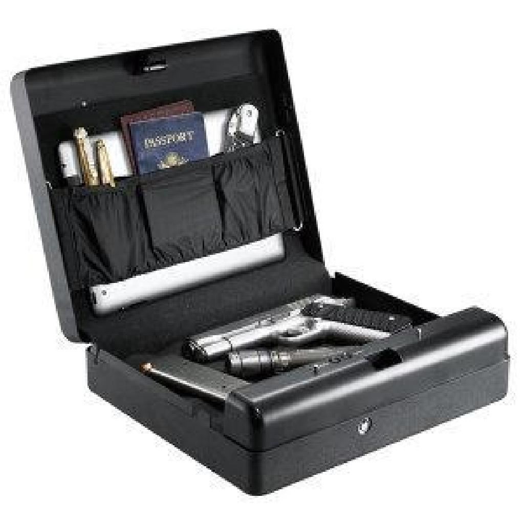 Features Exterior dimensions: 3.50 x 10.25 x 12.00 in. Interior dimensions: 2.50 x 8.00 x 11.50 in. Mountable Protective foam liner Low battery warning Tamper indicator Backup override key Power source: 1 x 9V Batteries not included California DOJ approved