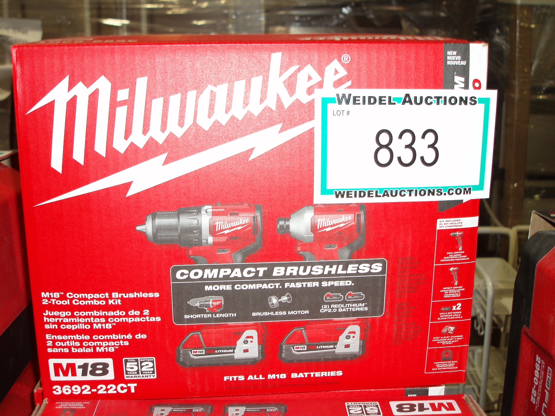 NEW Milwaukee M18 Compact Brushless 2 Tool Combo Kit - comes with 2 batteries, charger, contractor bag