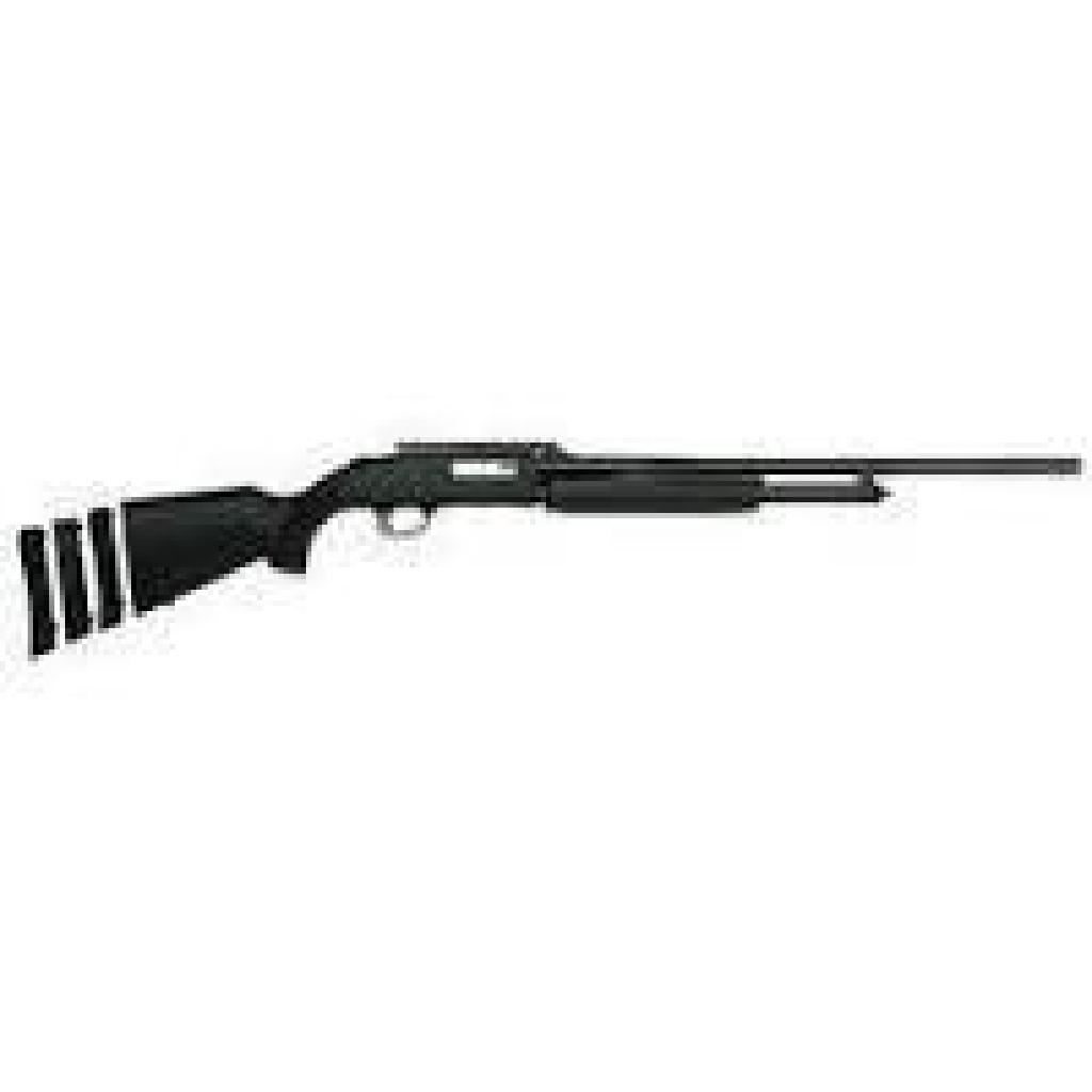 Stock Description:Black Synthetic Adjustable Action:Pump Gauge:20 Gauge Barrel Length:24.0" Capacity:4+1 Chamber:3" OAL:42.75" Weight:5.25 lbs Choke Configuration:N/A Receiver Description:Black Chokes Included:Rifled Bore Barrel Description:Fully-Rifled Sights:None, Cantilever Scope Mount Hand:Right Stock Finish Group:Synthetic Metal Finish Group:Blued/Black