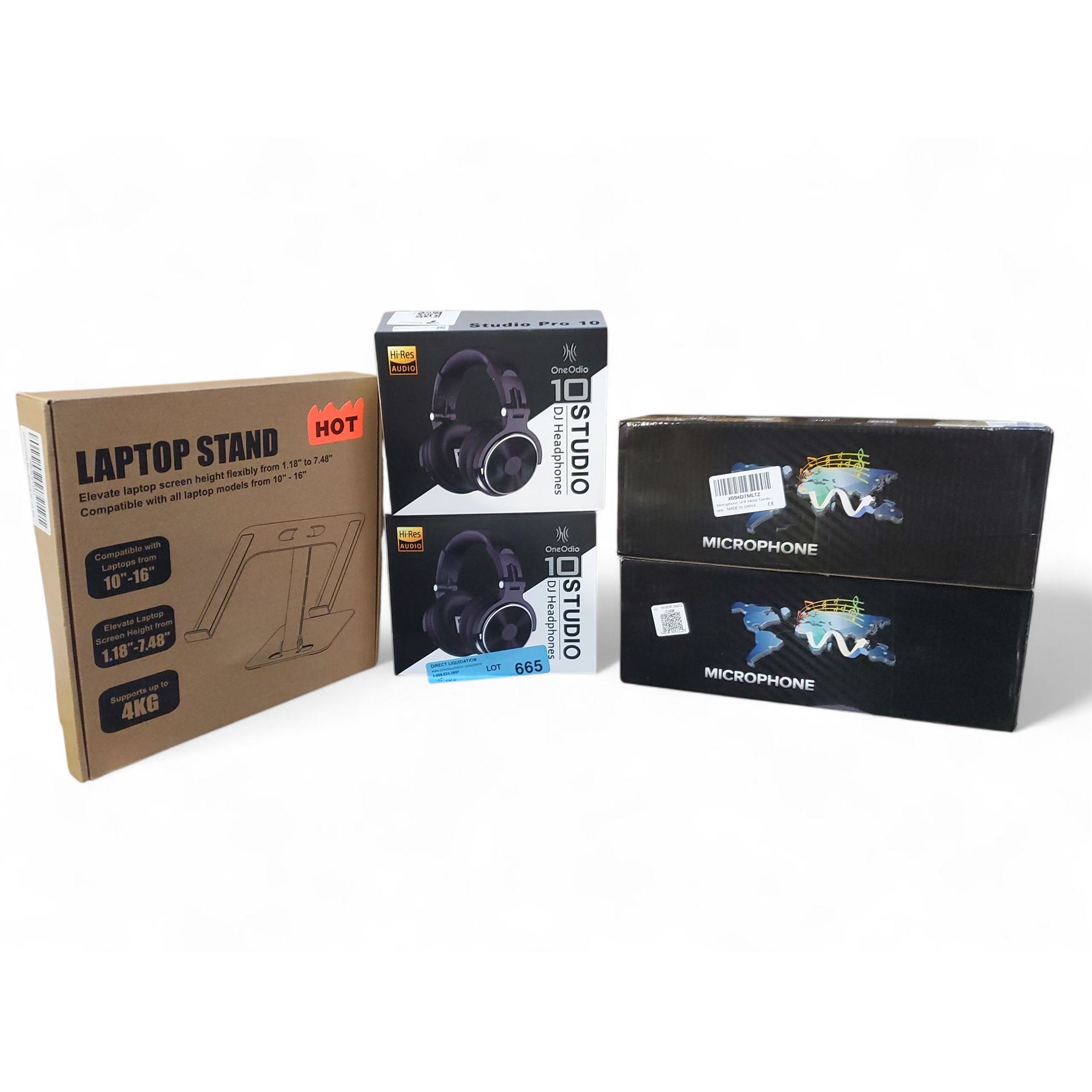 NEW Movie Set Dec Electronic Lot - includes Set of 2 Wireless Microphones, Laptop Standing & 2 OneOdio 10 DJ Headphones
