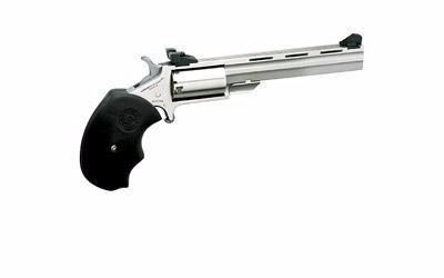 Product Specifications UPC Code: 744253000553 Manufacturer: North American Arms Model: Mini Master Action: Revolver Type: Single Action Caliber: 22LR Caliber: 22WMR Barrel Length: 4" Frame/Material: Steel Finish/Color: Stainless Grips/Stock: Rubber Capacity: 5Rd Sights: Fixed Sights Manufacturer Part #: NAA-MMC