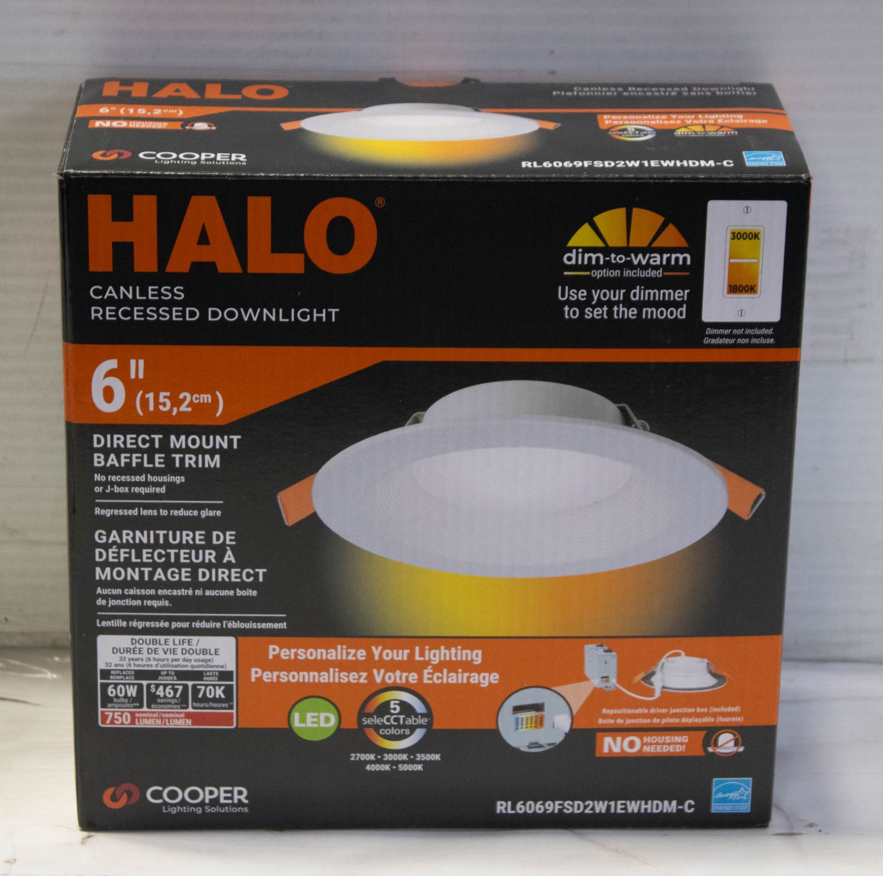 DIMMABLE FROM DIM TO WARM, 6" DIRECT MOUNT BAFFLE TRIM, 750 LUMENS, 7.5W, AMZ SES