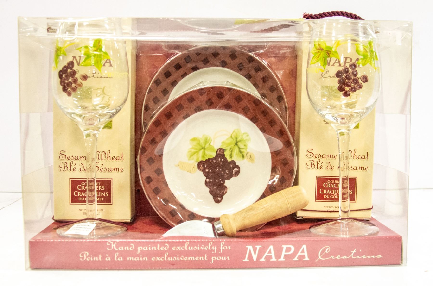 SET - HAND PAINTED WINE GLASSES AND CHEESE PLATES