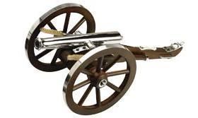 Reminiscent of the cannon used by the armies of both the North and South during the Civil War. Features metal-rimmed wheels and is offered in large scale .69 caliber with authentic accessories. This cannon has nickel plating and is shipped ready to display or fire. .69 caliber, 14.5" barrel, 11.5" height, 11.5" wheel diameter, 15 pounds. Item #CN8001 WARNING: Black powder firearms cannot be shipped to New Jersey, New York City, Illinois, Michigan, or Canada. For all other states, please review your state and local laws before ordering.