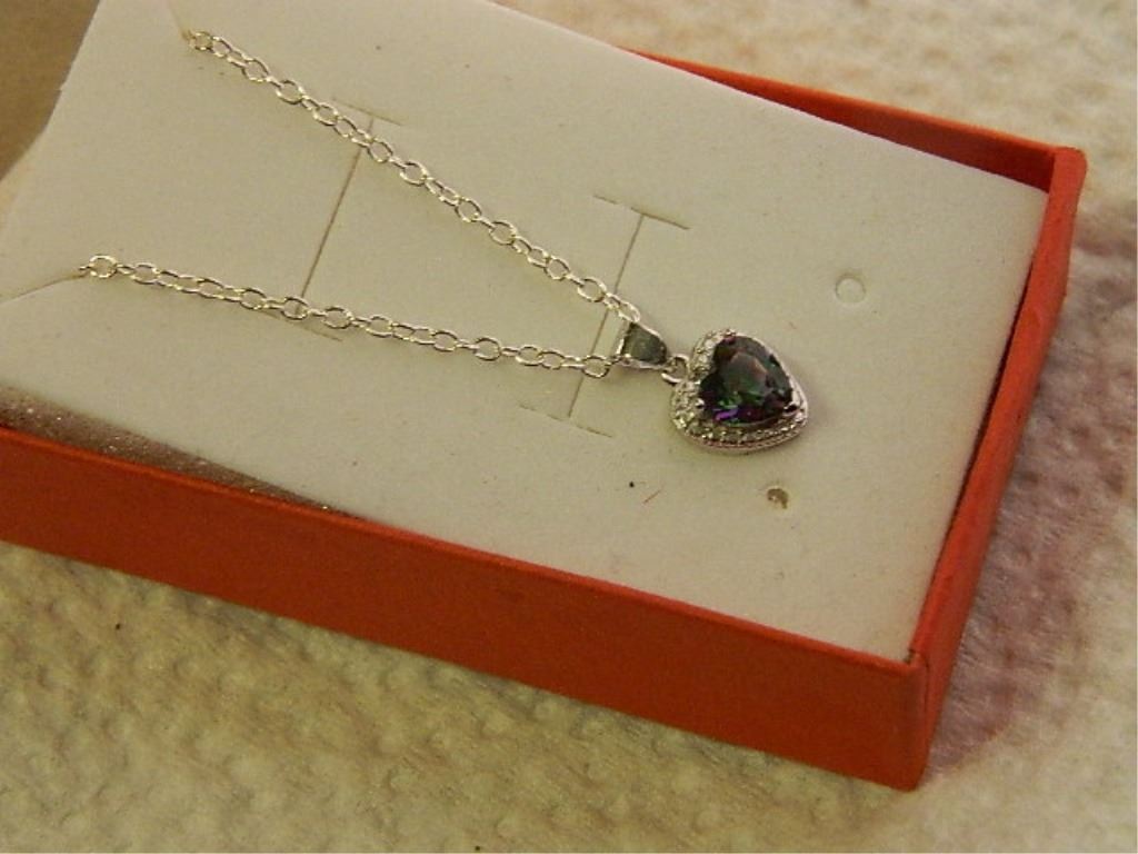 NEW NECKLACE - 1.9CT HEART FACETTED MYSTIC TOPAZ & DIAMOND IN STELRING SILVER SETTING - INCLUDES CERTIFICATE $275 - w-13