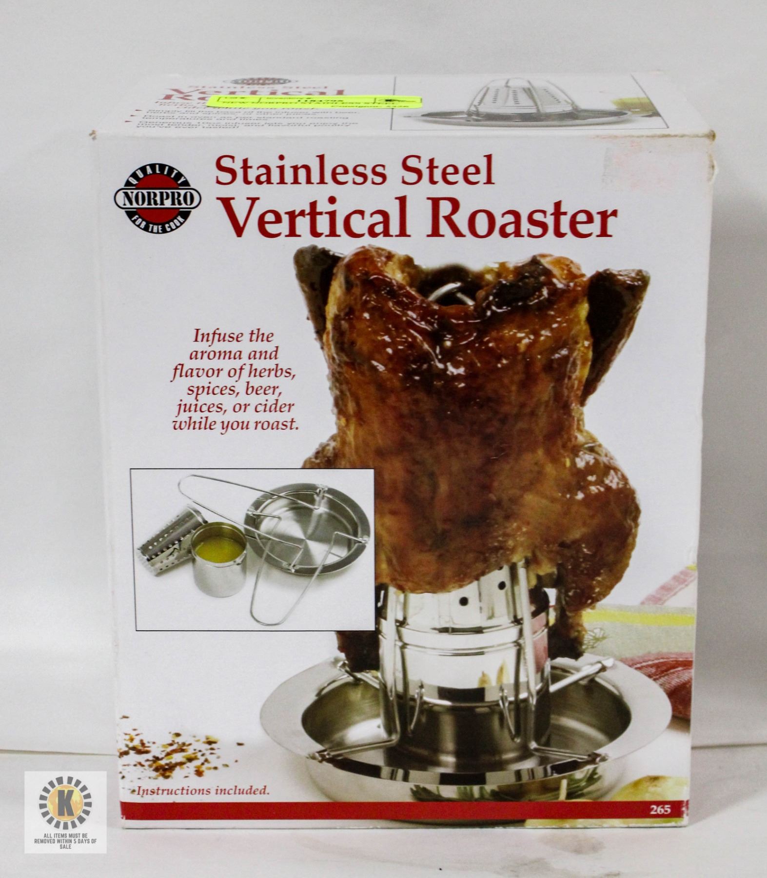 VERTICAL ROASTER **ALL ITEMS MUST BE REMOVED BY 5PM SATURDAY, MARCH 15TH 2025. ALL REMAINING ITEMS WILL BE SUBJECT TO A $6.00 PER DAY STORAGE CHARGE. ANY ITEMS REMAINING AFTER MONDAY, MARCH 31ST 2025 WILL BE CONSIDERED FORFEITED. NO REFUNDS WILL BE ISSUED FOR FORFEITED ITEMS. TO SCHEDULE A PICK UP APPOINTMENT CLICK HERE