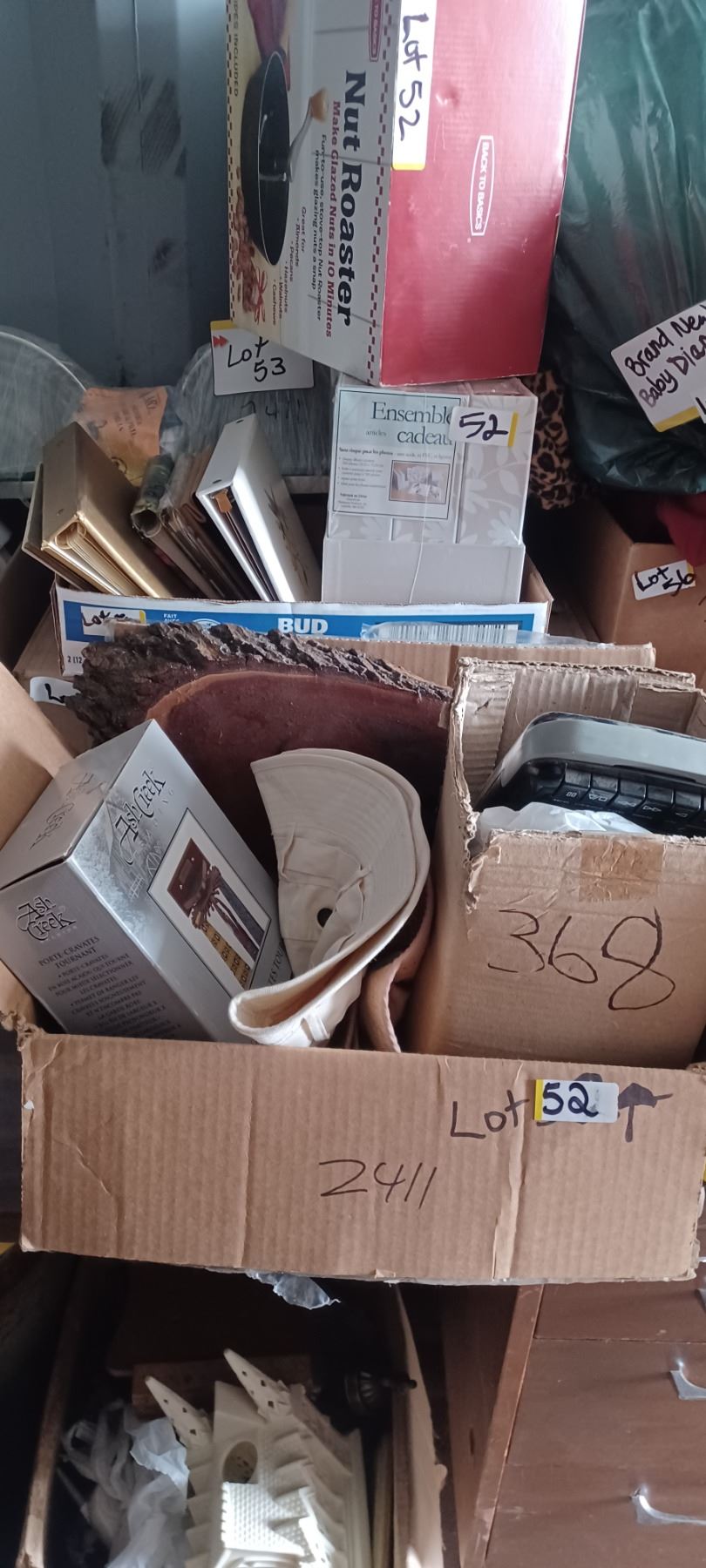 NEW NUT ROASTER, PHOTO ALBUMS, MISC DISHES, NEW TIE HOLDER