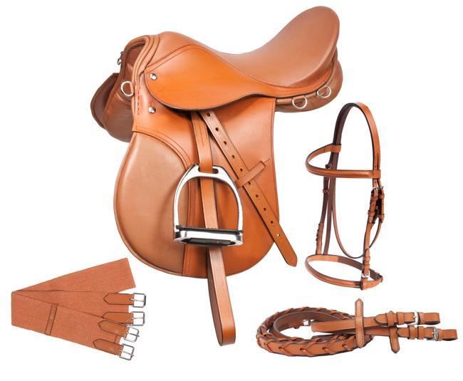 Specs Color: Tan Deep Padded leather seat Padded Knee rolls Girth with Heavy Duty Buckles with rollers Stirrup Leathers Stirrup Irons and Pads Measurements Gullet: 6.5" Medium Tree Seat: 16, 17, 18 Flap: 15" Girth Size: 50 Stirrup Leather Length: 57'', with 12 holes 1'' apart Stirrup Iron Width: 4.5''' Rein Length: 109''