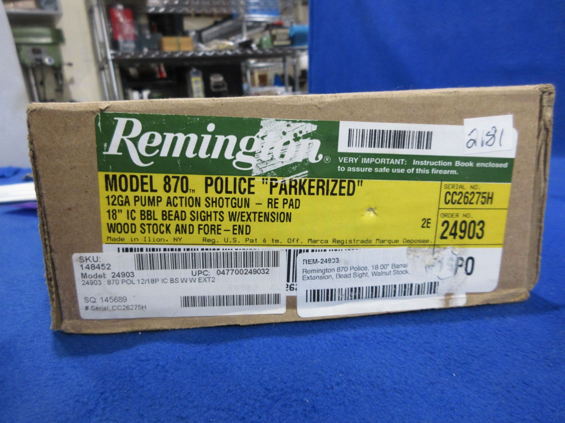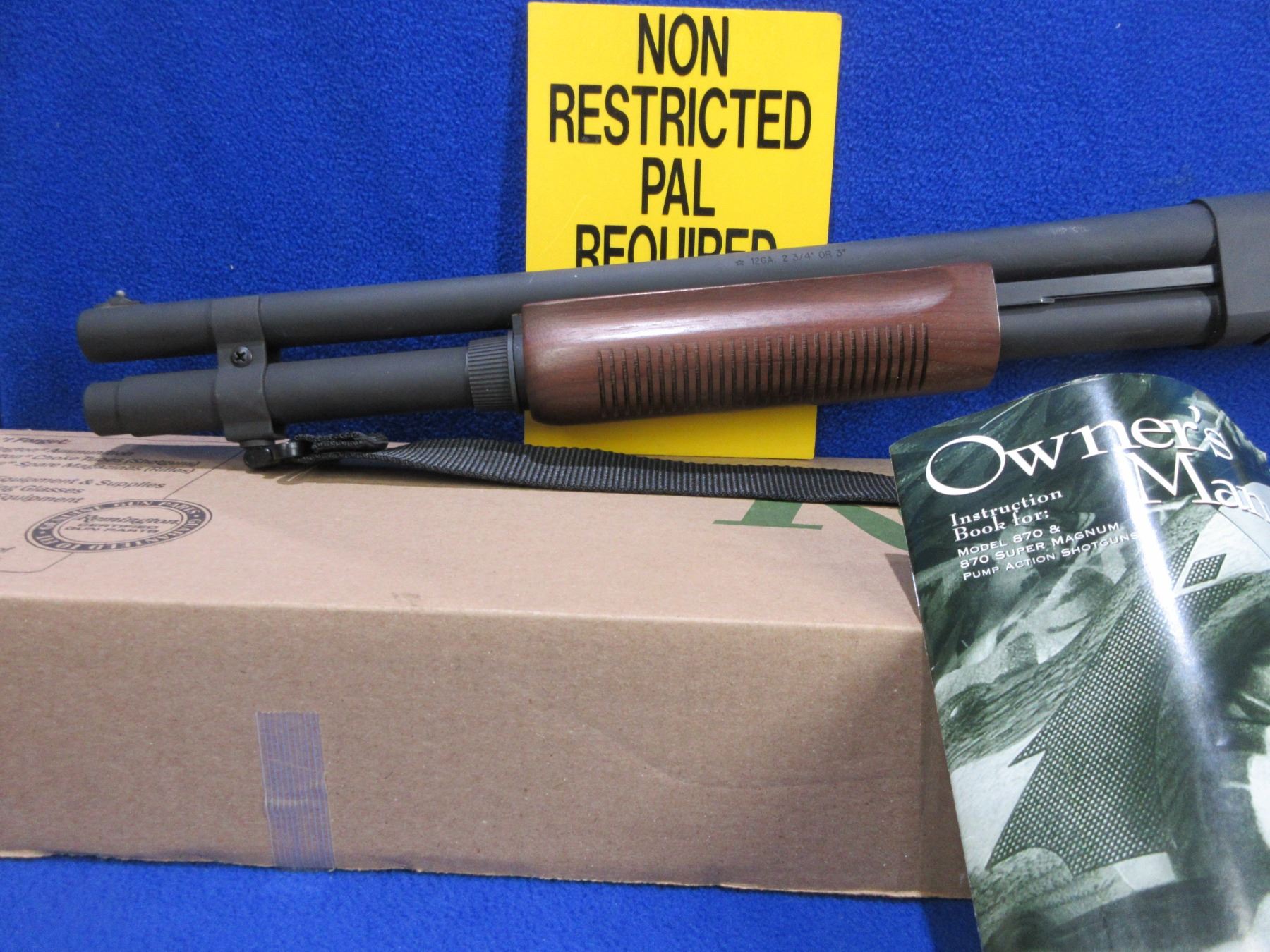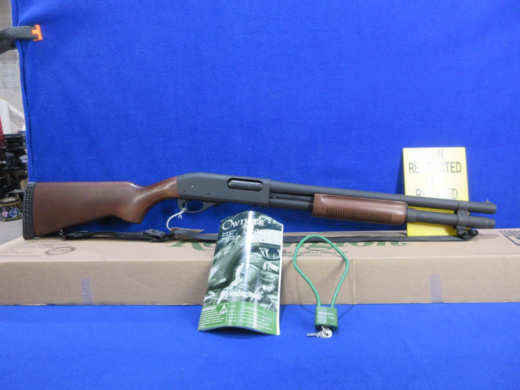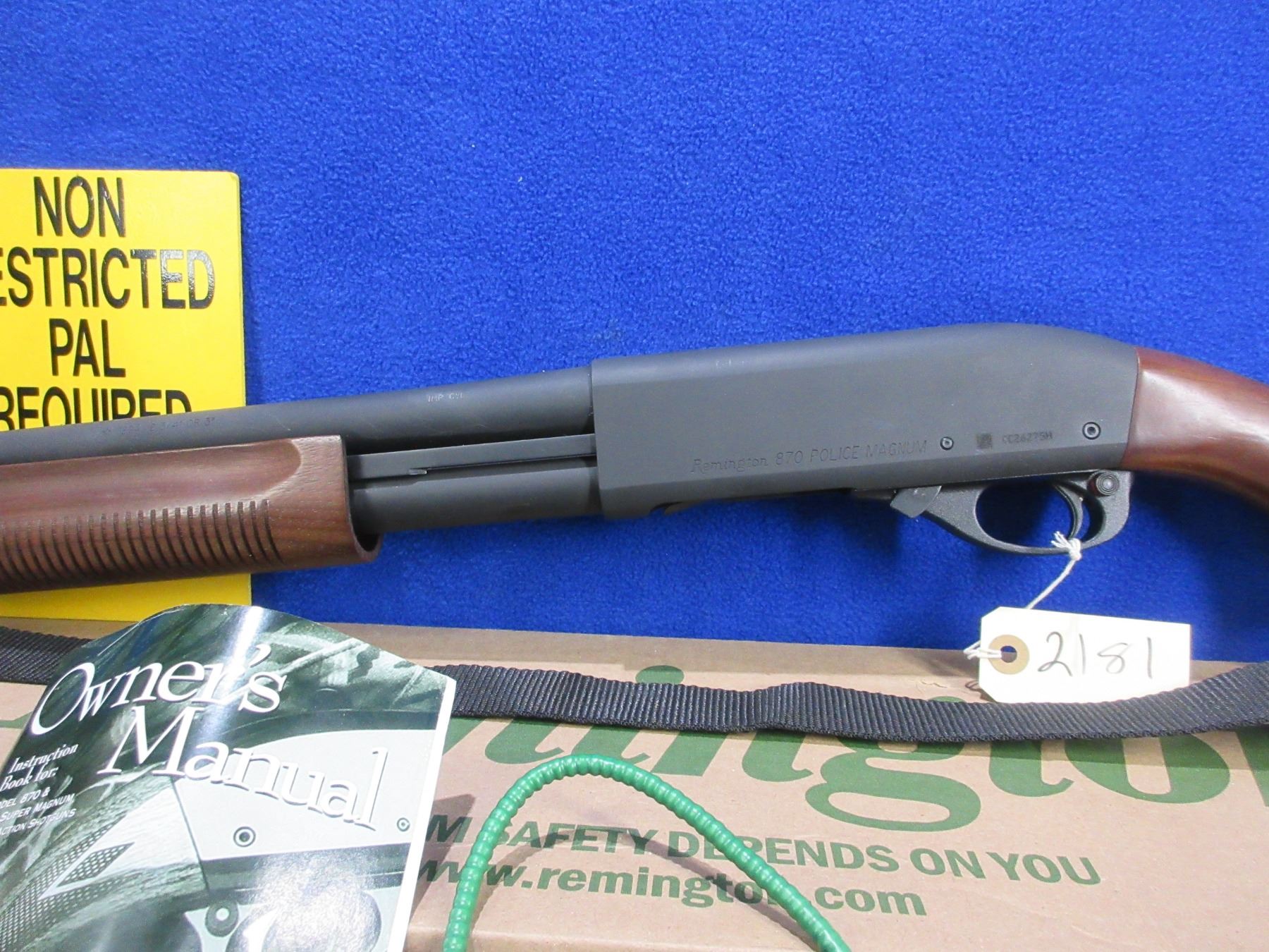 NEW - Non-Restricted - Remington 870 Police Magnum in 12 Ga. 2 3/4" - This is a NEW pump action shotgun with tube magazine . Barrel is 18 1/2", length of pull is 14", rubber recoil pad good, comes with original box, padlock and instruction manual. Ser # CC26275M