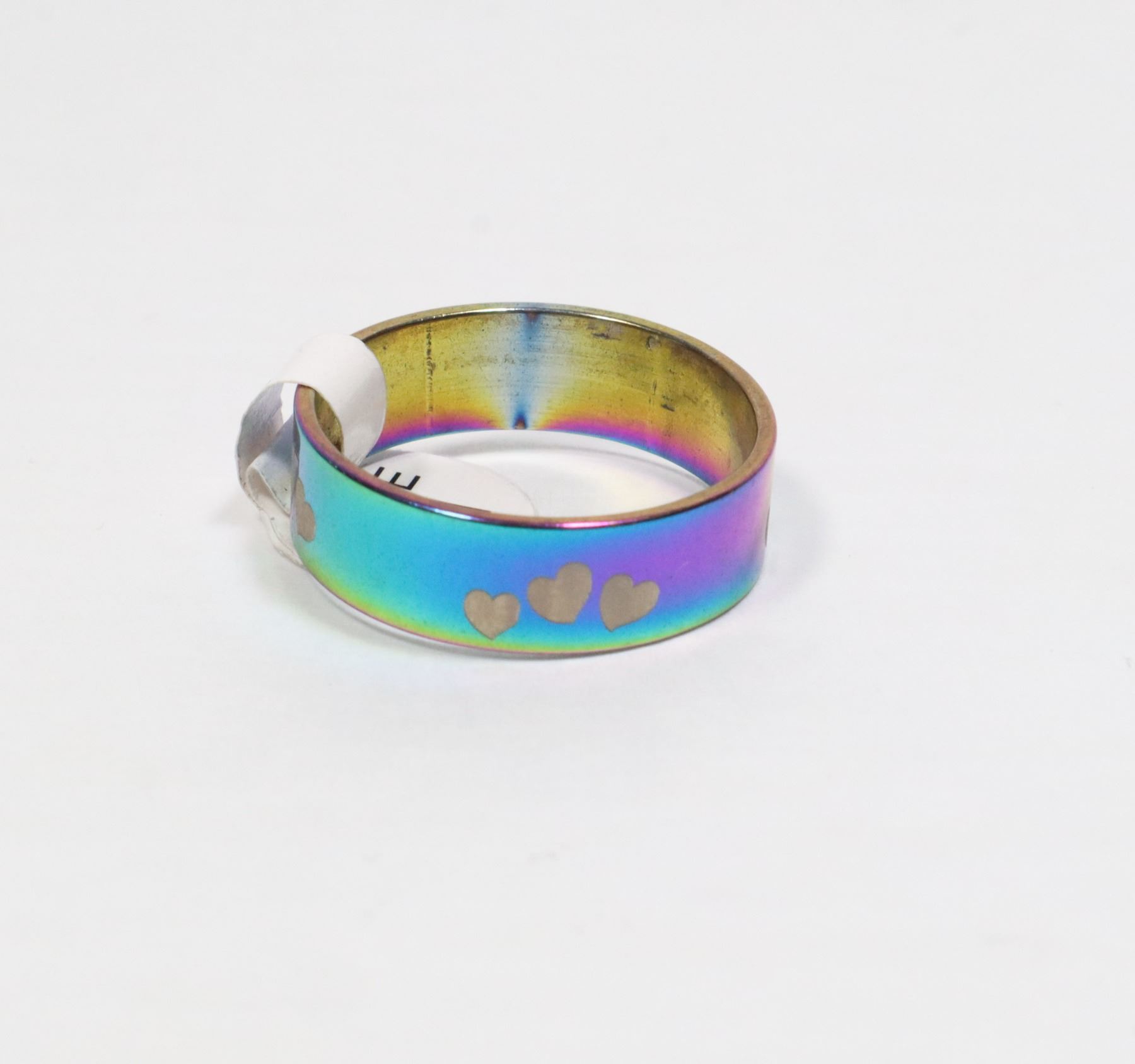 NEW OIL-SLICK TONE HEART DESIGN SIZE 11 STAINLESS