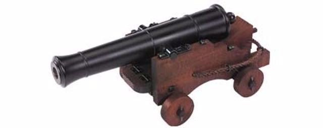 Nearly 3 times heavier than its little brother, the Mini Old Ironsides. This .69 caliber has the look and feel of a working piece of artillery. This cannon is fully operational and accurate in scale and detail. It is shipped ready to display or fire. .69 caliber, 12.5" barrel, 6" height, 2.125" wheel diameter, .690 round ball diameter, weighs 9 pounds Item #CN8052 WARNING: Black powder firearms cannot be shipped to New Jersey, New York City, Illinois, Michigan, or Canada. For all other states, please review your state and local laws before ordering.
