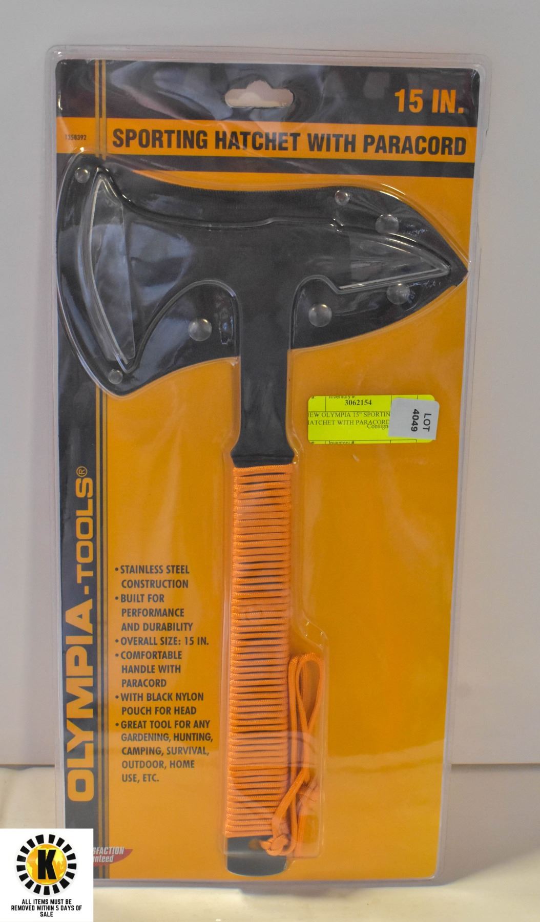 NEW OLYMPIA 15" SPORTING HATCHET WITH PARACORD