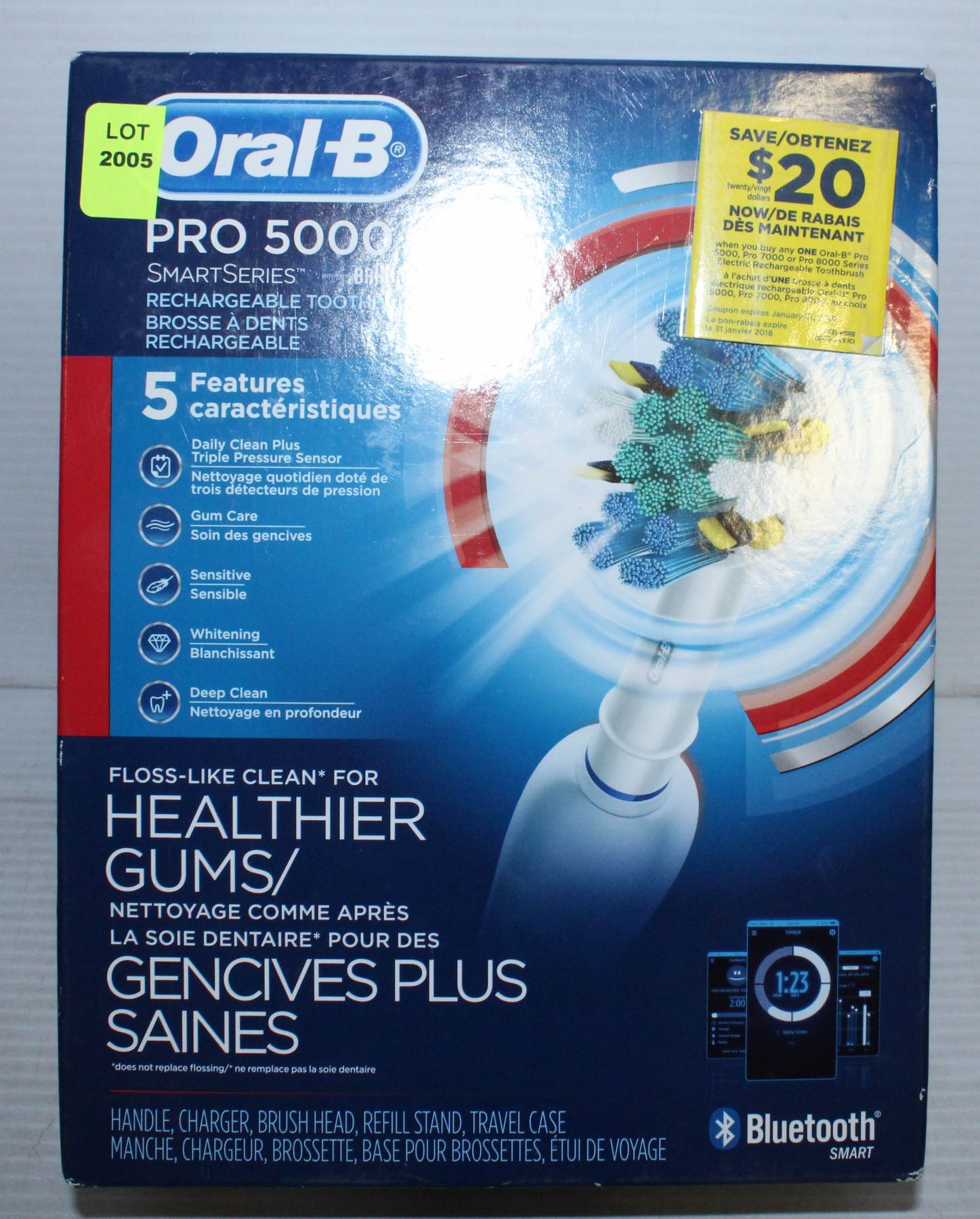 TOOTHBRUSH. FEATURES DAILY CLEAN PLUS TECHNOLOGY, SENSITIVE GUM CARE, WHITENING TECHNOLOGY, DEEP FLOSS LIKE CLEAN. COMES WITH HANDLE, CHARGER, BRUSH HEAD, REFILL STAND AND TRAVEL CASE. BLUE TOOTH ENABLED. RETAILS FOR $174.96.