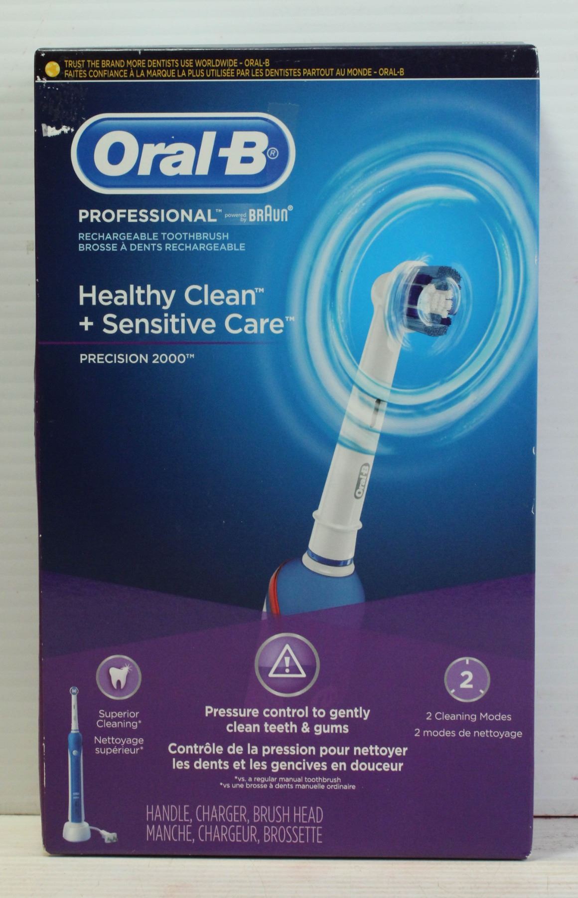 CARE PRECISION 2000 RECHARGEABLE TOOTHBRUSH. 2 CLEANIG MODES. PRESSURE CONTROL TO GENTLY CLEAN TEETH AND GUMS. COMES WITH HANDLE, CHARGER, AND BRUSH HEAD. RETAILS FOR $69.99