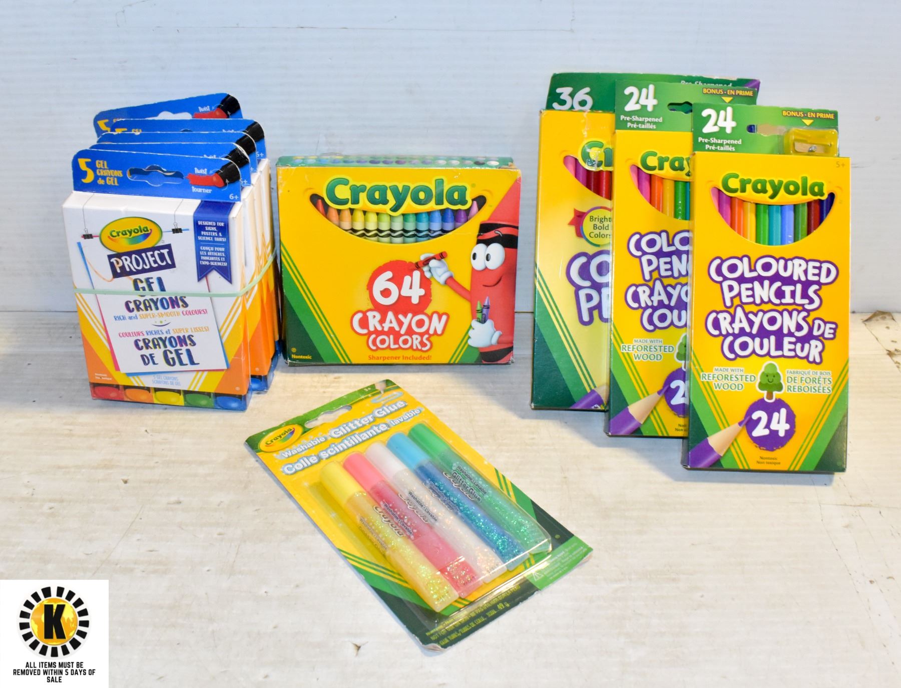 PROJECT GEL CRAYONS 5 PACKS OF, 64 PACK CRAYONS, 3 PACKS PENCIL CRAYONS, GLITTER GLUE