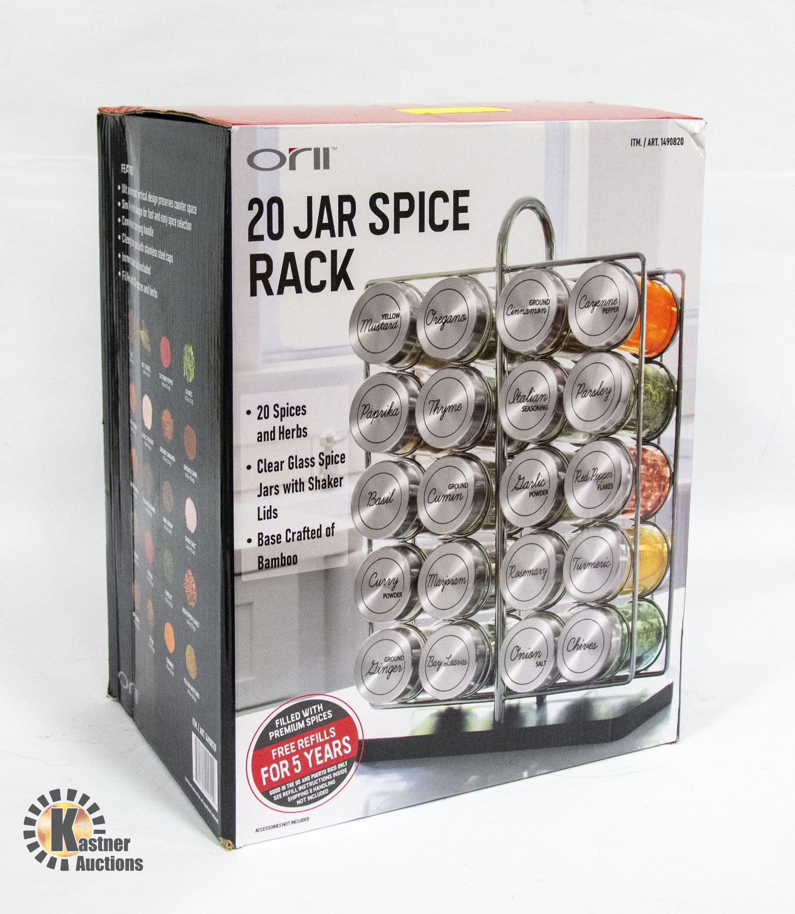 20 CLEAR GLASS SPICE JARS WITH STAINLESS STEEL LIDS, CARRYING HANDLE **ALL ITEMS MUST BE REMOVED BY 5PM SATURDAY, DECEMBER 30TH 2023. ALL REMAINING ITEMS WILL BE SUBJECT TO A $6.00 PER DAY STORAGE CHARGE. ANY ITEMS REMAINING AFTER MONDAY, JANUARY 8TH, 2023 WILL BE CONSIDERED FORFEITED. NO REFUNDS WILL BE ISSUED FOR FORFEITED ITEMS. TO SCHEDULE A PICK UP APPOINTMENT CLICK HERE