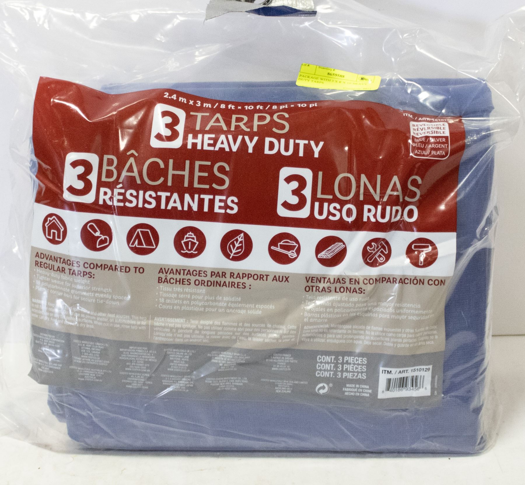 NEW PACKAGE WITH 3 X 8' X 10' HEAVY DUTY TARPS