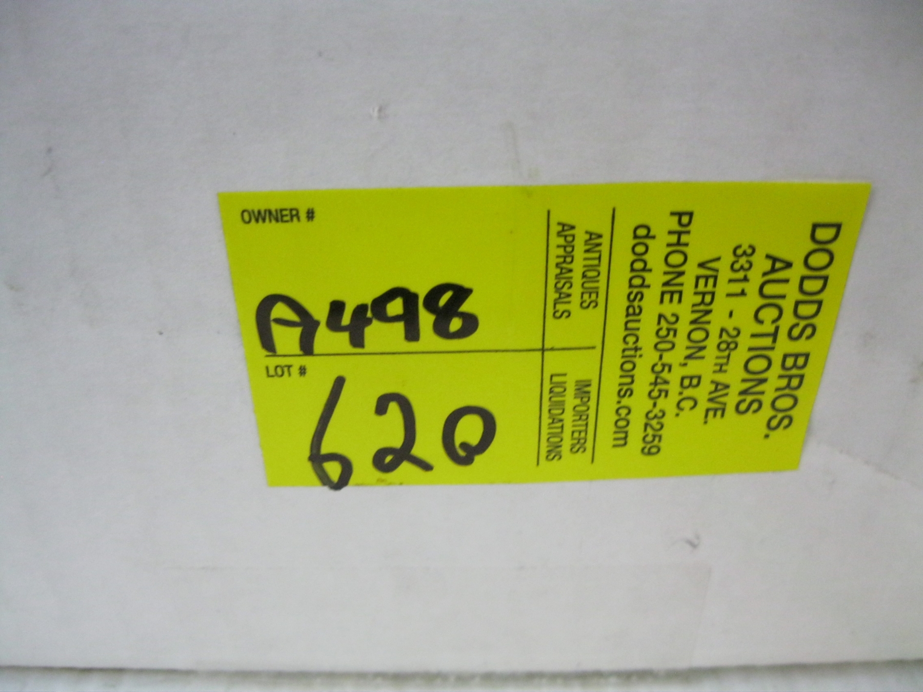 Attendance at the auction preview, or removal of purchased lots by purchaser/bidders and guests is done at their sole risk. Dodds Auction assumes no risk or liability, statutory, common law or otherwise whatsoever for the safety of those attending at the auction premises.