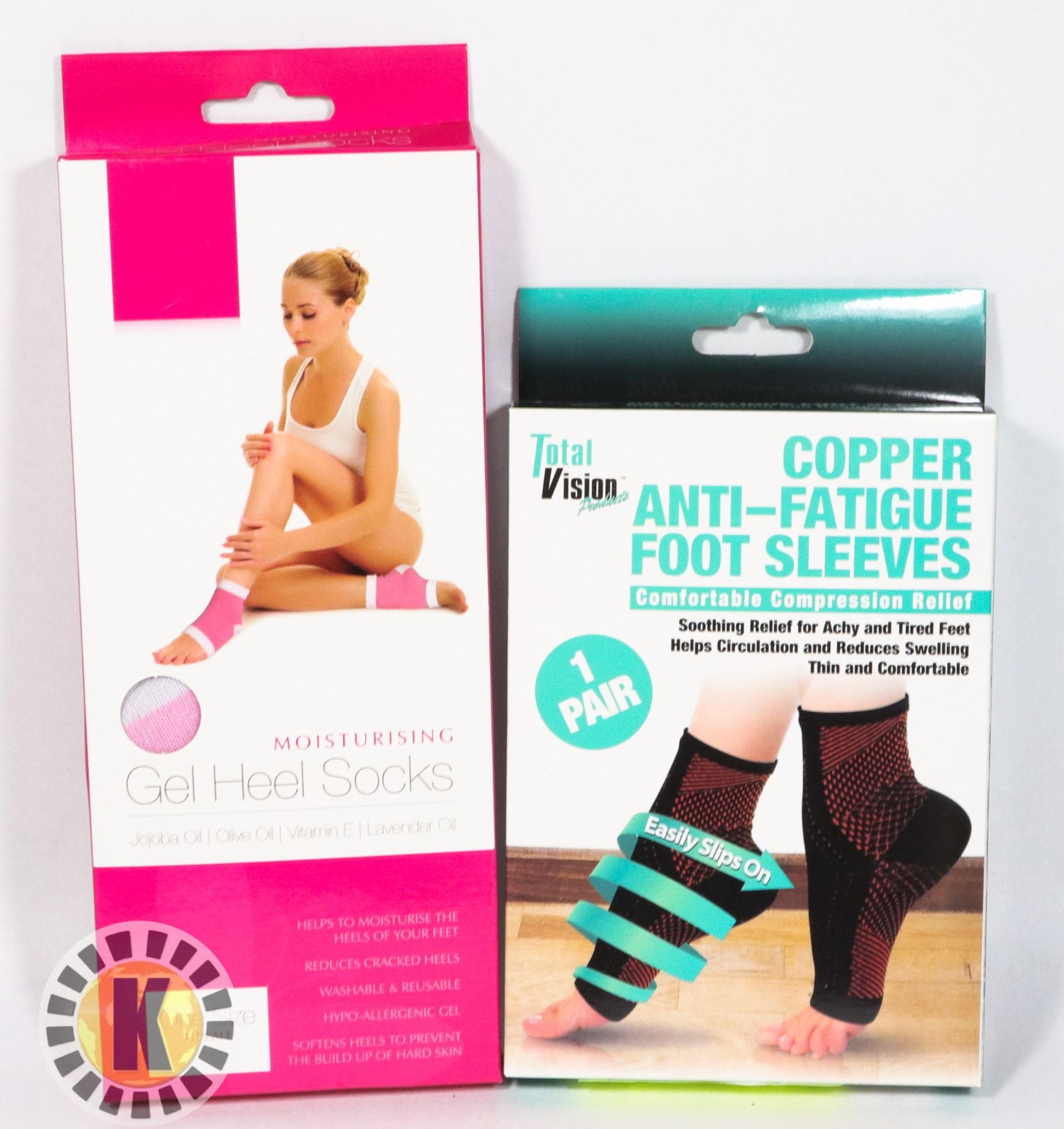 PAIR OF COPPER ANTI-FATIGUE FOOT SLEEVES. HAND WASH ONLY