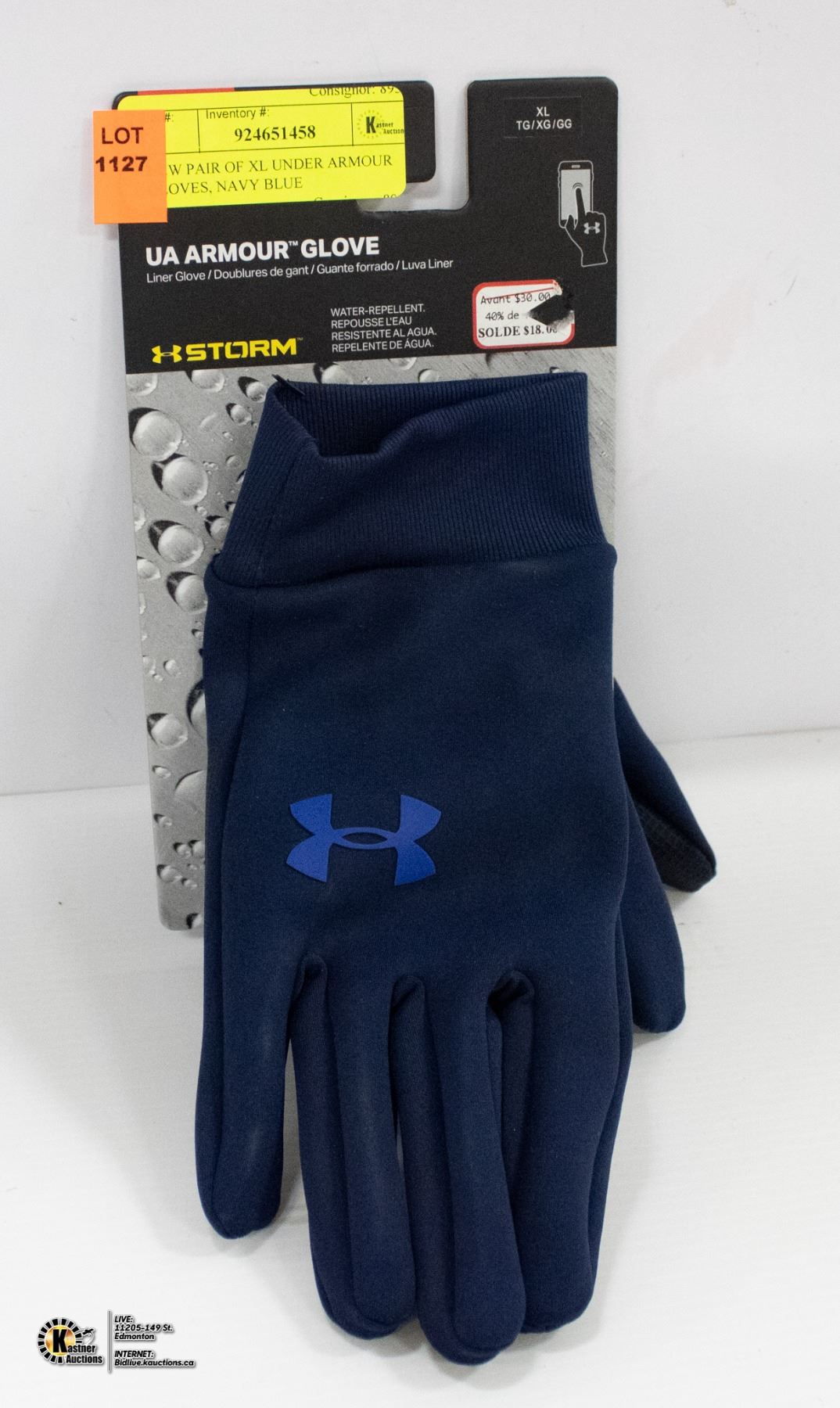 NEW PAIR OF XL UNDER ARMOUR GLOVES, NAVY BLUE TOUCH SCREEN FRIENDLY AND WATER REPELLANT, HBC SES