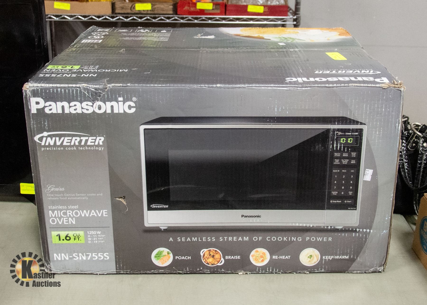MICROWAVE OVEN NN-SN755S POWER 1250W WITH INVERTER TECHNOLOGY, 14 AUTO COOKING SETTINGS, STAINLESS DOOR DESIGN WITH BLACK BODY AND SMOKED GLASS **ALL ITEMS MUST BE REMOVED BY 5PM SATURDAY, FEBRUARY 3RD 2024. ALL REMAINING ITEMS WILL BE SUBJECT TO A $6.00 PER DAY STORAGE CHARGE. ANY ITEMS REMAINING AFTER MONDAY, FEBRUARY 19TH, 2023 WILL BE CONSIDERED FORFEITED. NO REFUNDS WILL BE ISSUED FOR FORFEITED ITEMS. TO SCHEDULE A PICK UP APPOINTMENT CLICK HERE