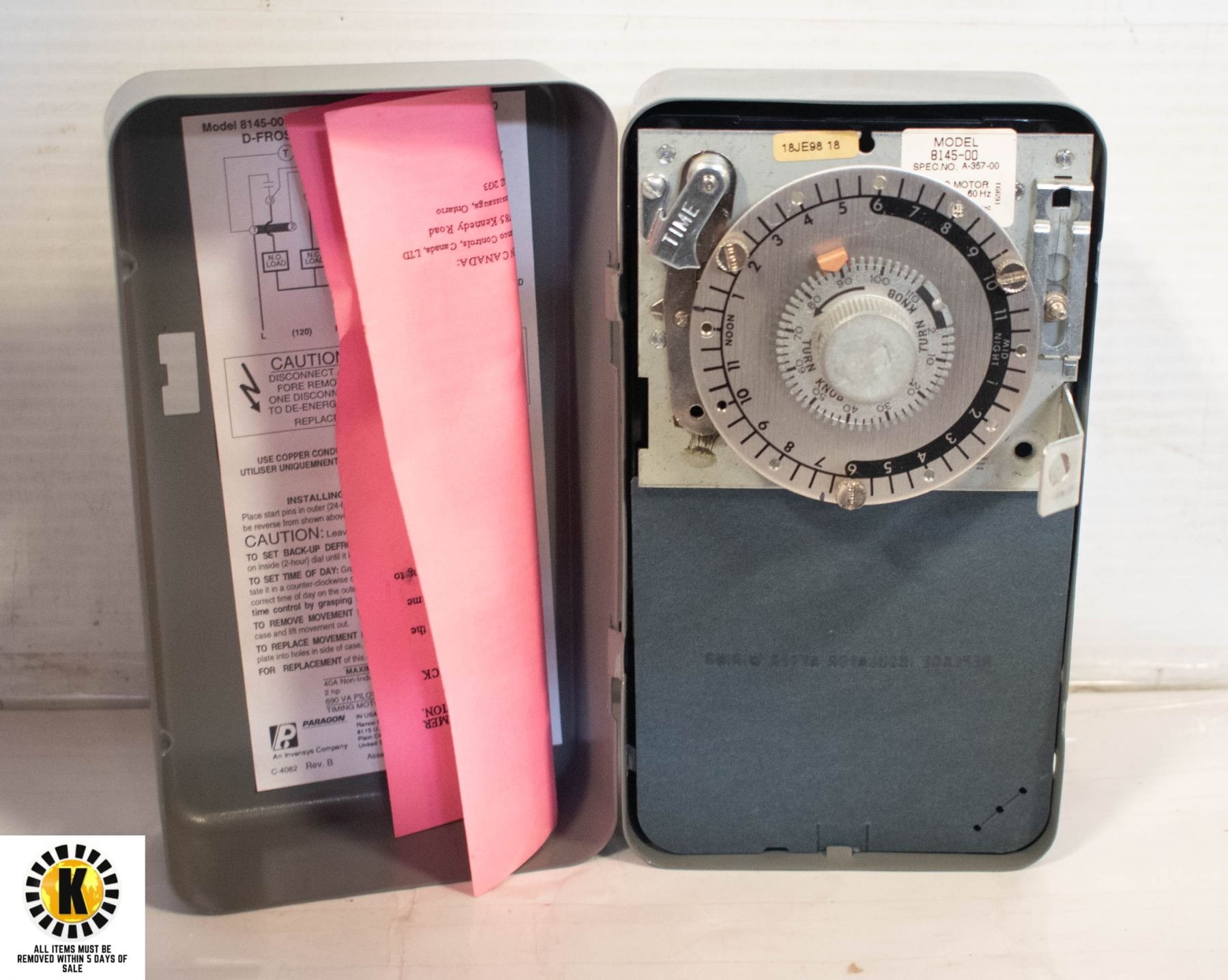 MODEL 8145-00, A-357-00; SINGLE CHANNEL ELECTRONIC TIME CONTROL; MAXIMUM CONTACT RATING - 40A, 2 HP, 690 VA PILOT DUTY.