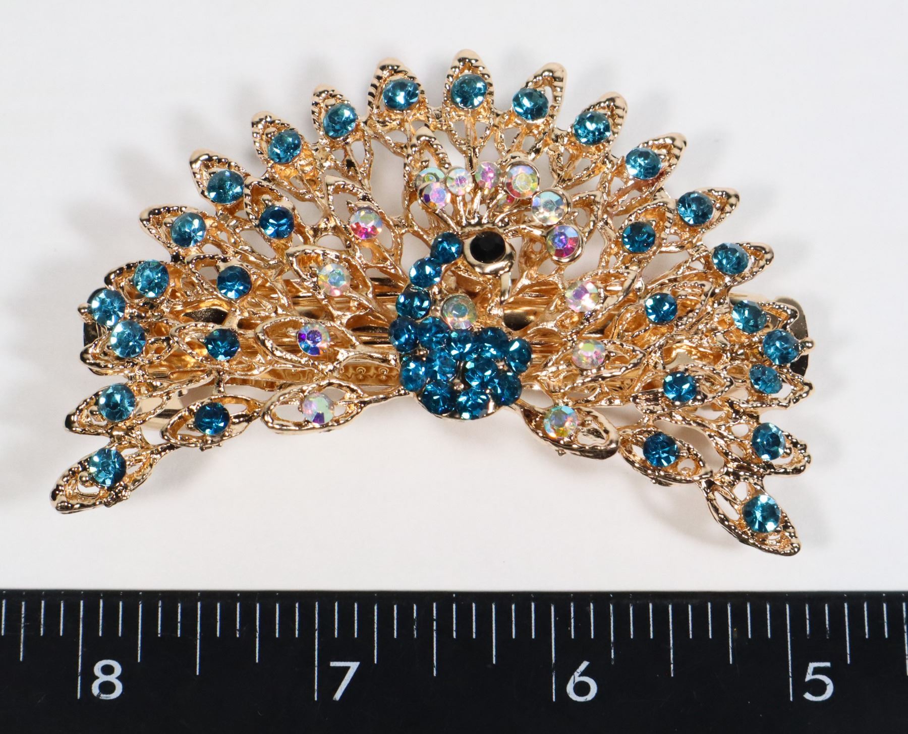 NEW PEACOCK RHINESTONE FRENCH CLIP